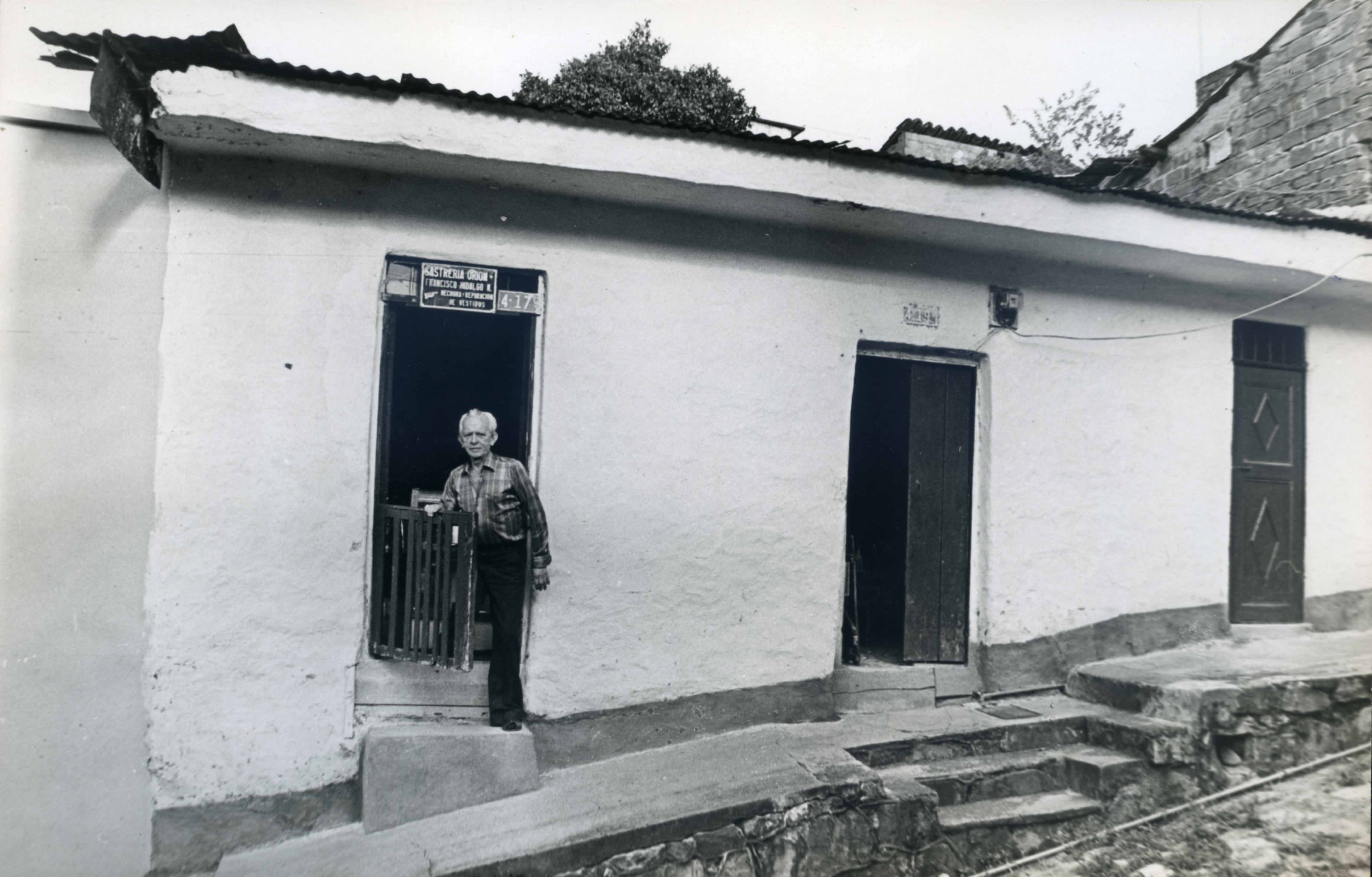 En el pie de foto dice lo siguiente: Barrio Cañaveralejo. Se observa un hombre de pie en la puerta de una vivienda. Apreciamos una placa que dice sastrería orión- Francisco Hidalgo- reparación de vestidos- hechuras