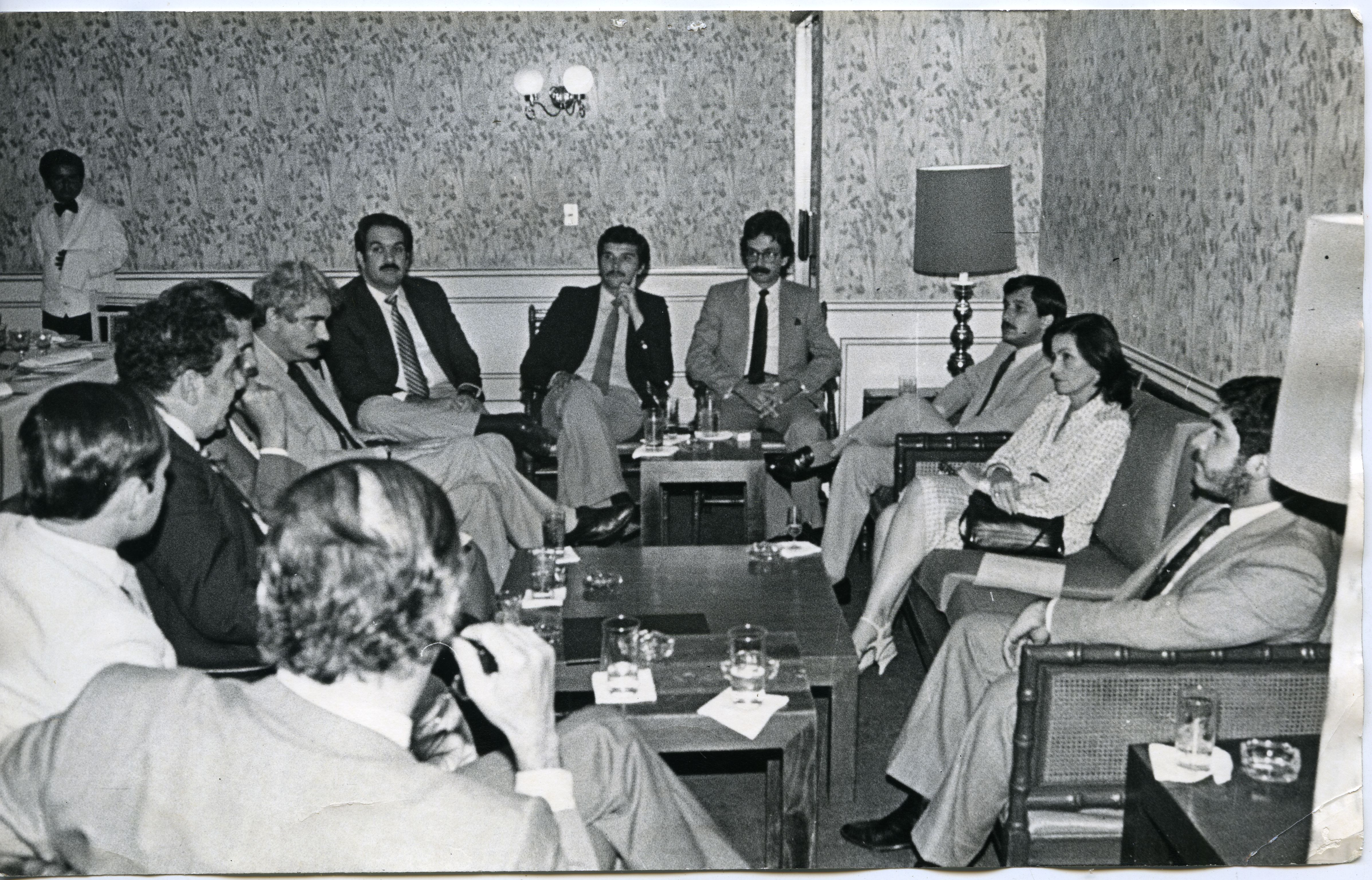 En la gráfica se observa a la gobernadora Doris Eder de Zambrano junto al director de Planeación el Dr Leopoldo Ramírez, Hugo Lora Camacho, Julián dominguez (presidente del grupo 80), Rodrigo Otoya, José Joaquín Montalvo, Julián Garcés y Jaime Cabal."