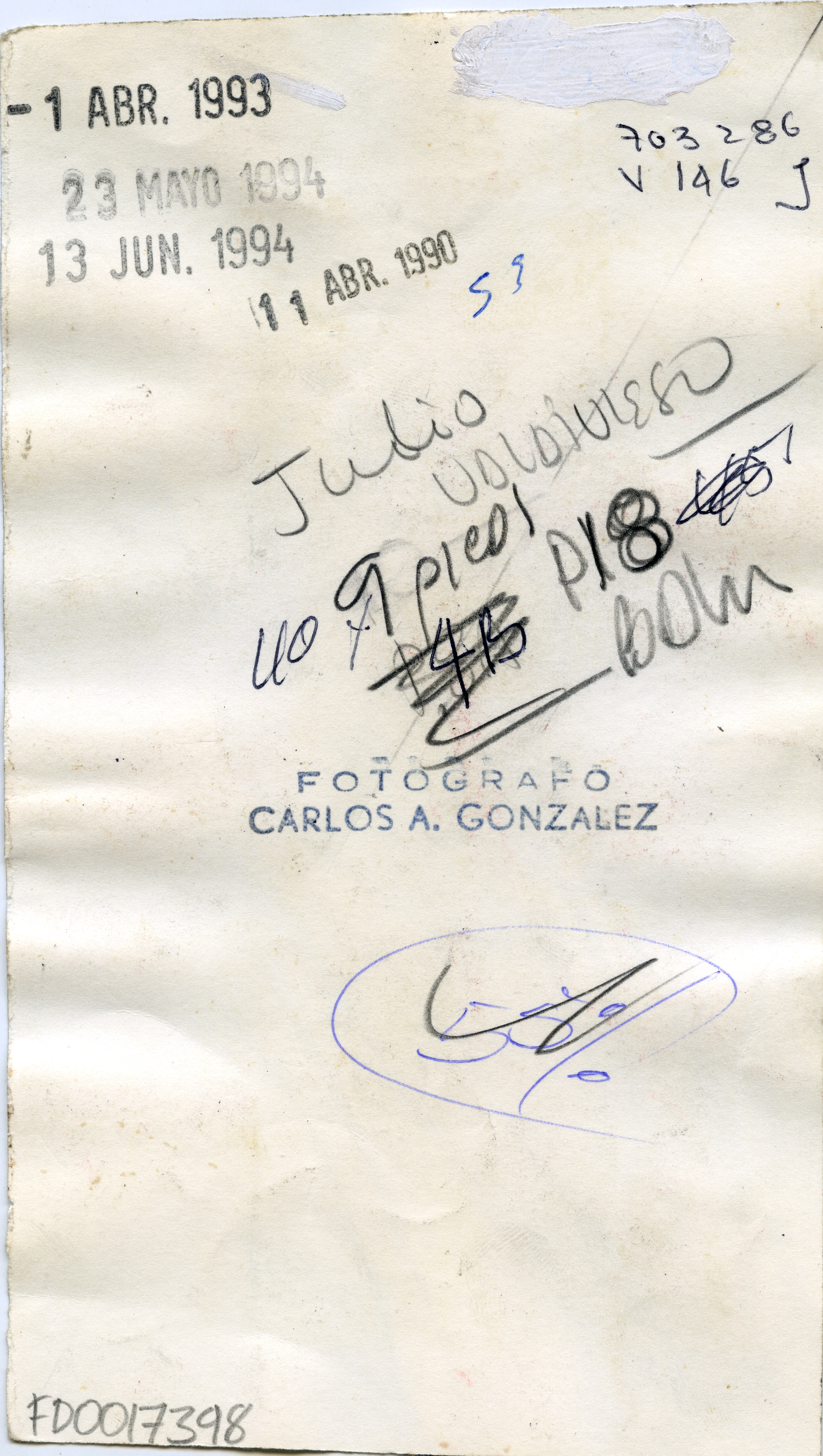 Julio Valdivieso, director Técnico. Nota en manuscrito reverso de la foto: Julio Valdivieso, Dir,Sel, Prej, Fútbol. Foto Carlos Ortega
