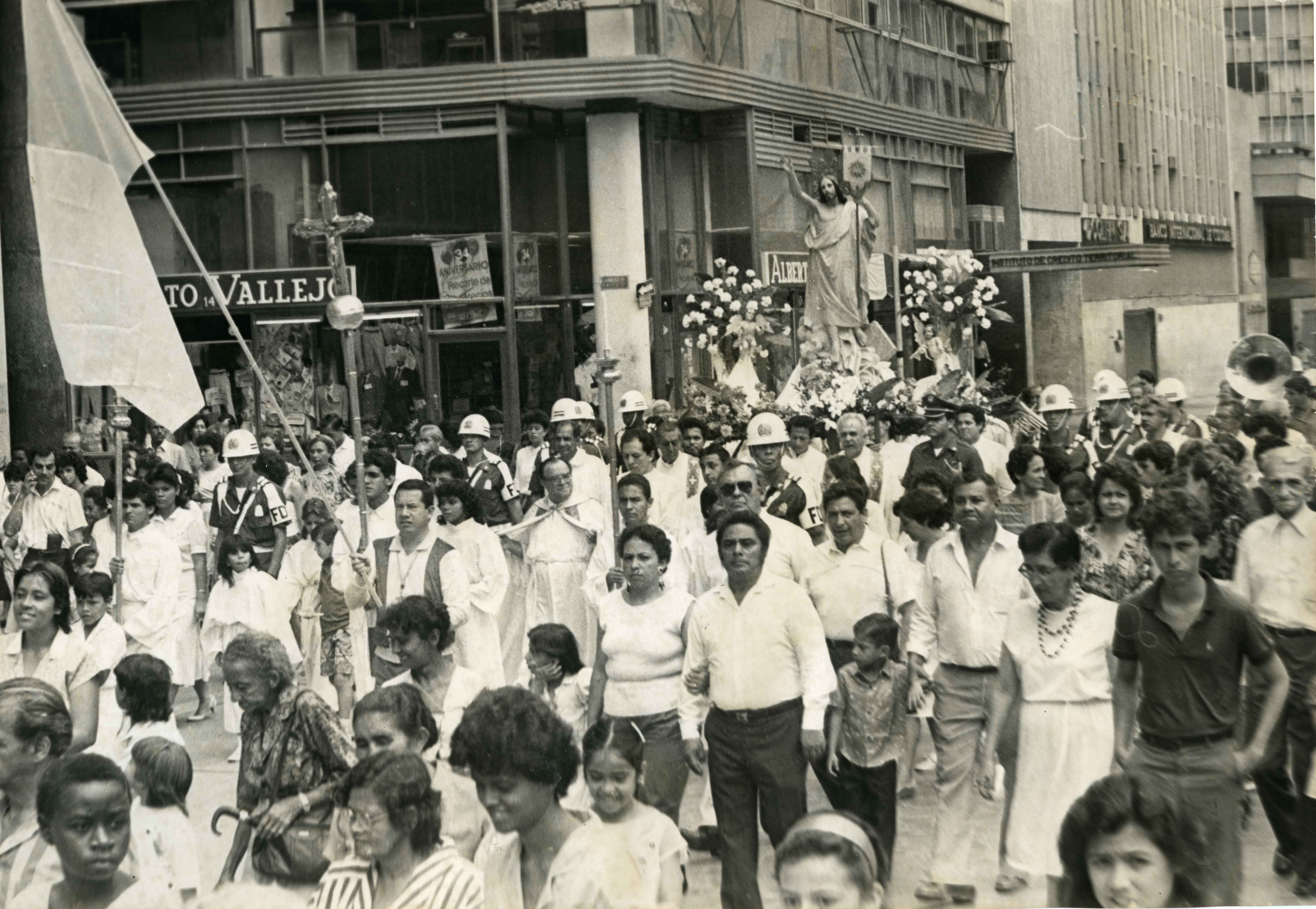 Procesión del Señor Resucitado por las vías céntricas inmediatas a la Catedral San Pedro Mártir en Santiago de Cali >El Archivo del Patrimonio Fotográfico y Fílmico del Valle del Cauca es responsabilidad de la Biblioteca Departamental del Valle Jorge Garcés Borrero, por convenio de cooperación suscrito con la Secretaria del Cultura Departamental, con el fin de aunar esfuerzos para su conservación, preservación y divulgación del Archivo entre la comunidad Vallecaucana, especialmente entre los estudiantes e investigadores que visitan la Biblioteca, propiciando el su uso y consulta permanente. La universidad Icesi es un colaborador en el proceso de difusión, facilitando la tecnología que permite la consulta de las imágenes.