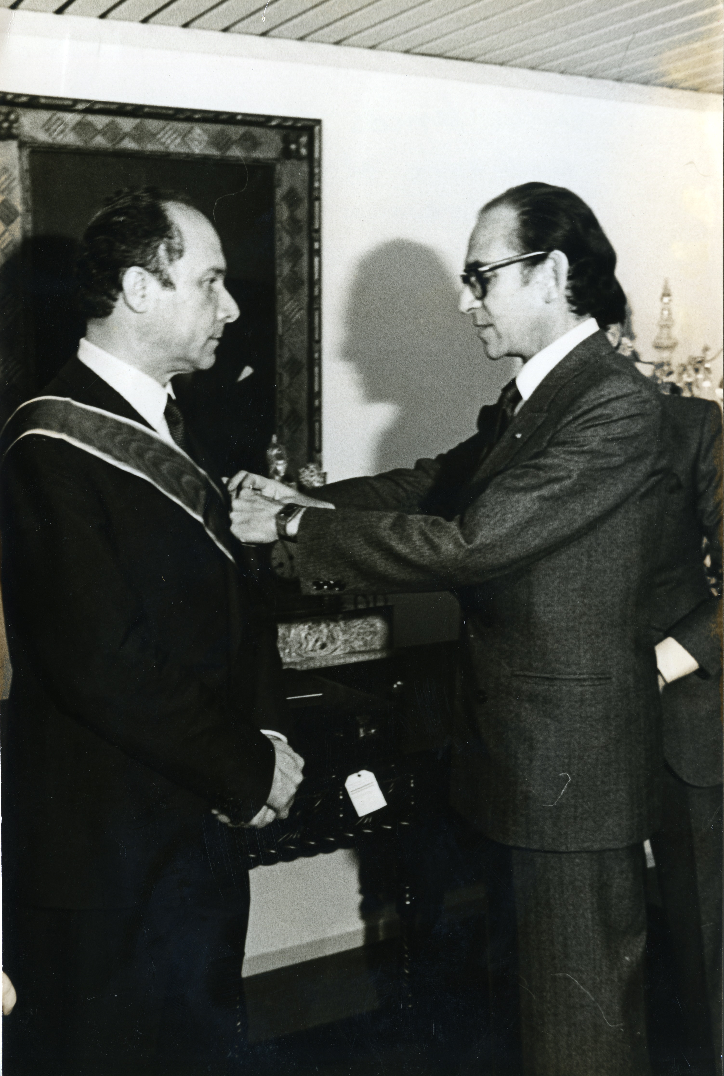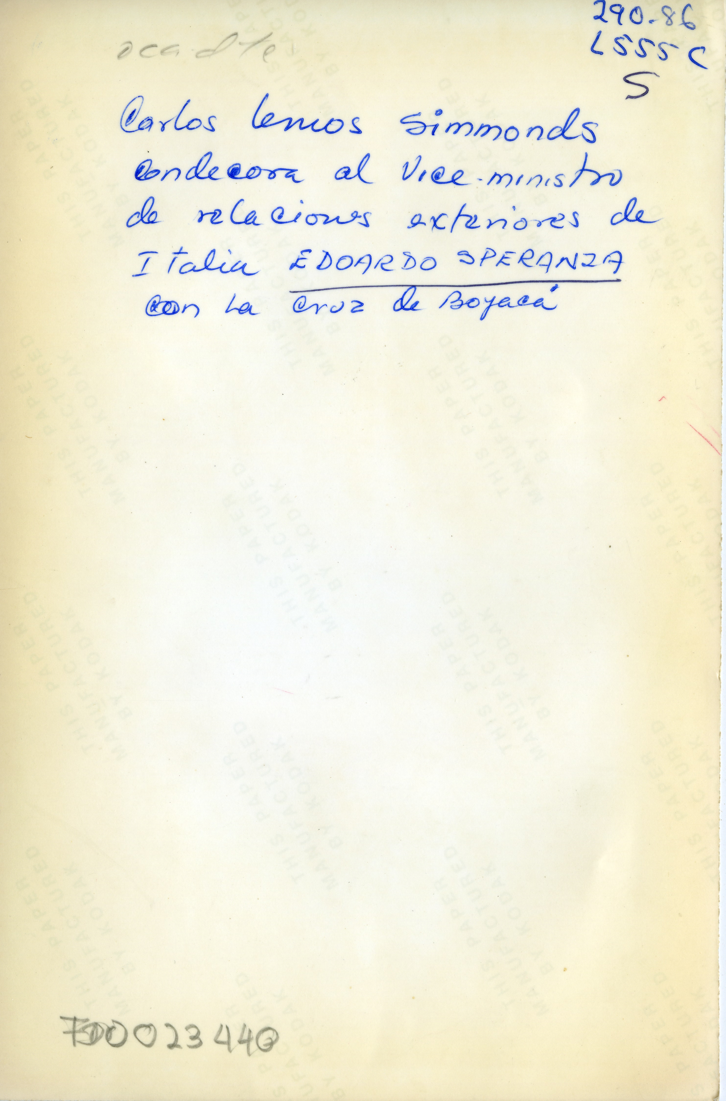 Carlos Lemos Simmonds condecora al viceministro de relaciones exteriores de Italia Edoardo Speranza con la cruz de Boyacá