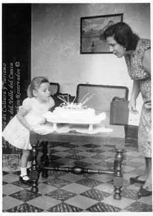 Celebración de cumpleaños. Inés Londoño y Luz Marina Alzate. Palmira, 1960.