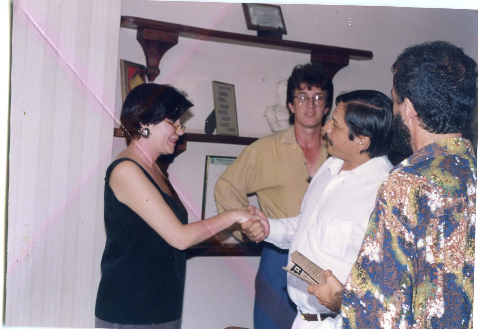 Caicedonia, Valle del Cauca. Fundado en 1905, por Daniel Gutiérrez, Jorge Moreno, Zenón Baena. Municipio desde 1923. Economía importante en agricultura, caficultura, ganadería, comercio, entre otros. Atractivo turístico: cerro de cubides, club de tiro, caza y pesca, río barragán, paraje natural, lagos. Observamos en la imagen, visita de María Mercedes Carranza