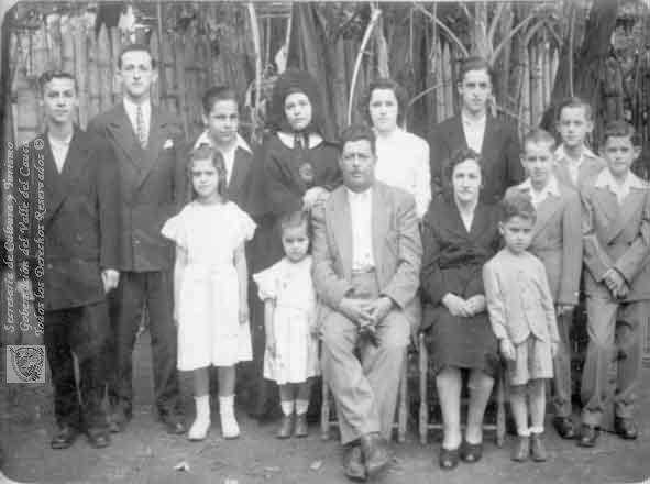 Fotografía familiar, obsérvese como en este tipo de fotografías los espacios escogidos son siempre abiertos. 1941.
