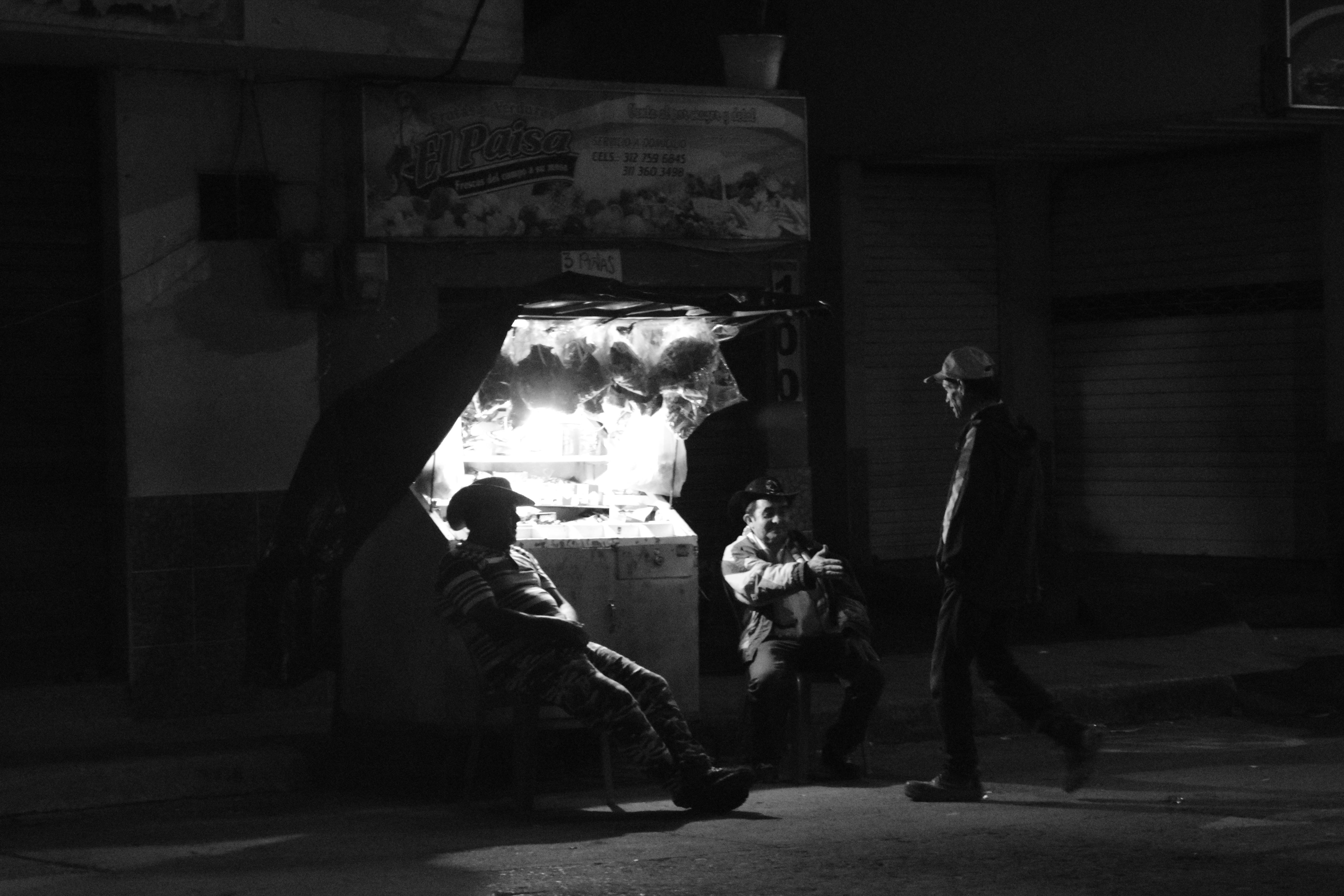 El Águila, Valle del Cauca. Fundado en 1899, por Emelecio Duque, Marcelino Echeverri y los hermanos Bernardo y Natalio Serna. Municipio desde 1950. Economía importante en agricultura, caficultura, ganadería, minería, explotación forestal, etc. Observamos en la imagen, tres personas en la tienda del barrio.