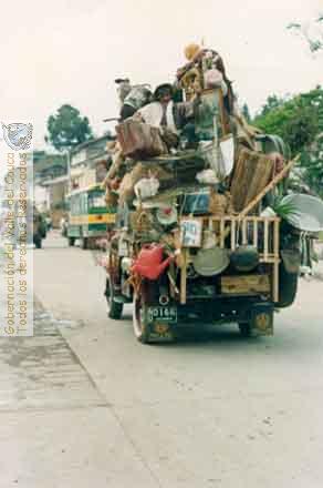 Trasteo típico en el municipio de Sevilla, en el Yipao, vehículo que aguanta grandes cargas. 1992.