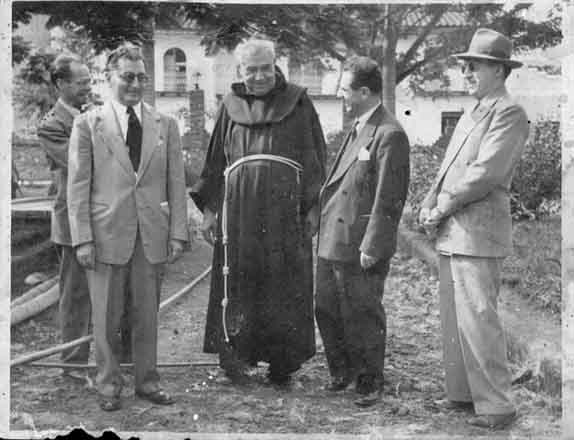 En el parque Belalcázar, un encuentro de Marco tulio Torres y Julio García con Fray Alfonso de la Concepción Peña, Yumbo, 1949