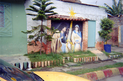 Pesebre pintado en muro de una edificación en el barrio San Judas Tadeo