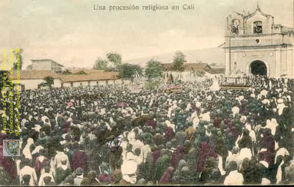 Procesión religiosa. Cali. Plaza de Santa Rosa. Cali, 1910.