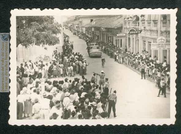 Competencia ciclística por las calle de la ciudad. gran cantidad de público, como era usual en este tipo de eventos.