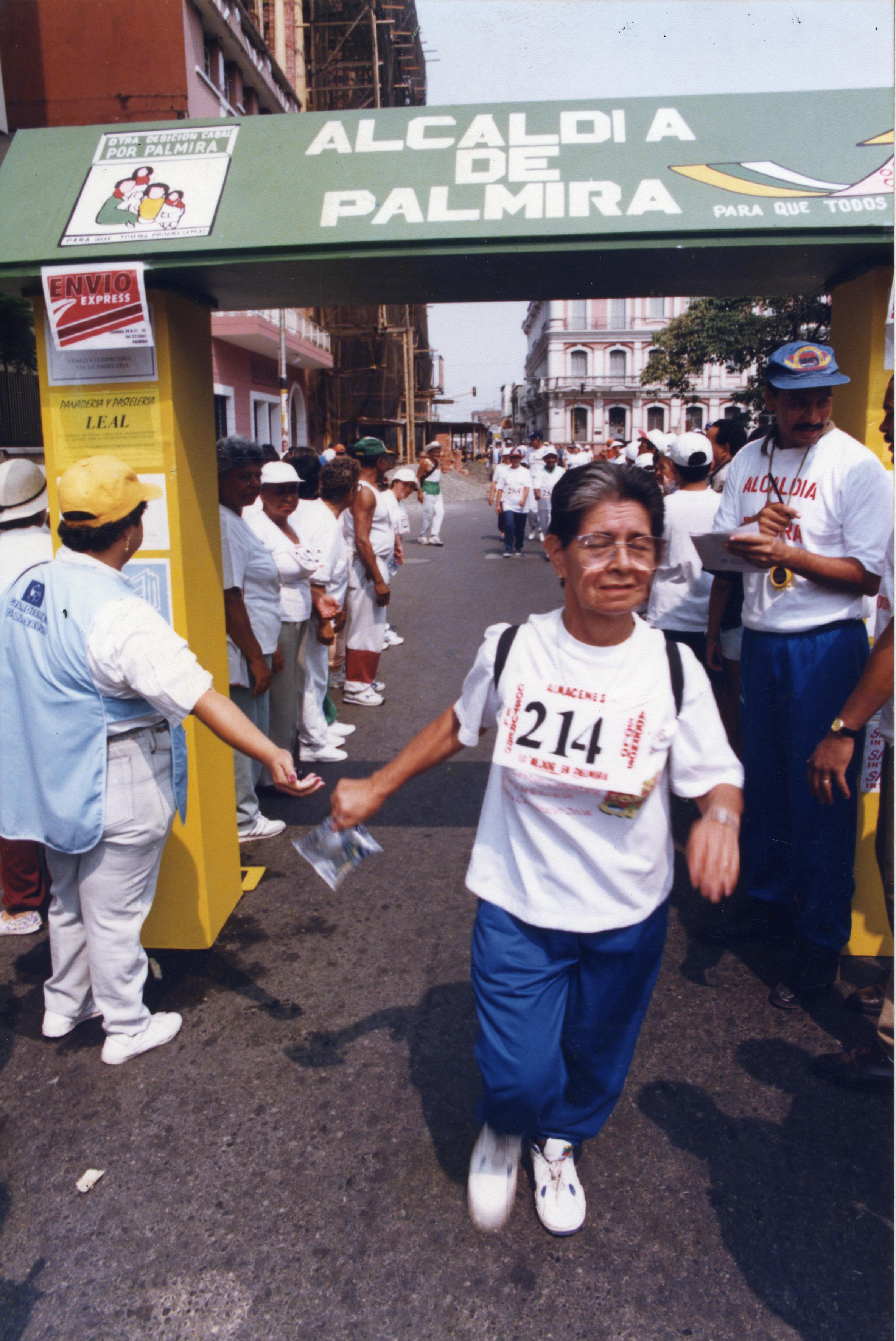 Al reverso de la fotografía se anexa el pie de foto del periódico: Festival Atlético. Una de las participantes en el Festival Atlético de la tercera edad llevado a cabo en la ciudad