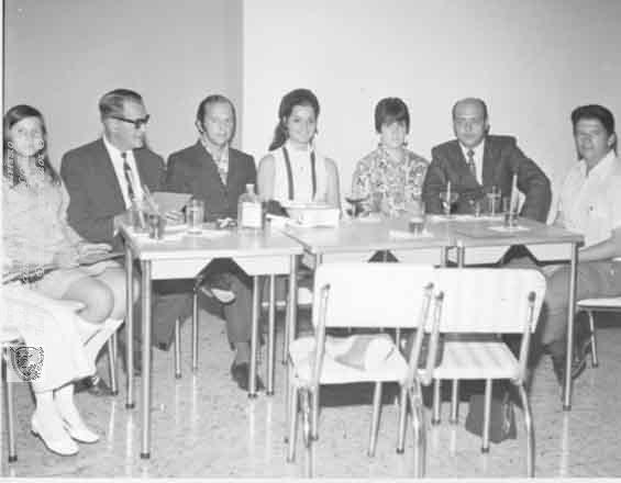Invitados a la celebración de una fiesta en el Club Los Gorriones. Entre los asisatentes: Carmen Elisa Villafañe y Alfonso Castaño. Roldanillo, C. 1.970