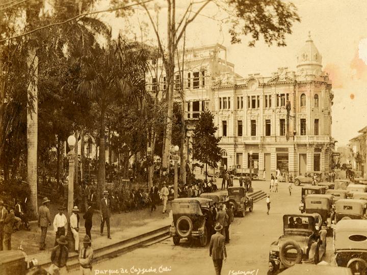 Foto Salazar (1940). Costado occidental de la Plaza de Cayzedo & A727. SANTIAGO DE CALI: Biblioteca Departamental Jorge Garces Borrero.