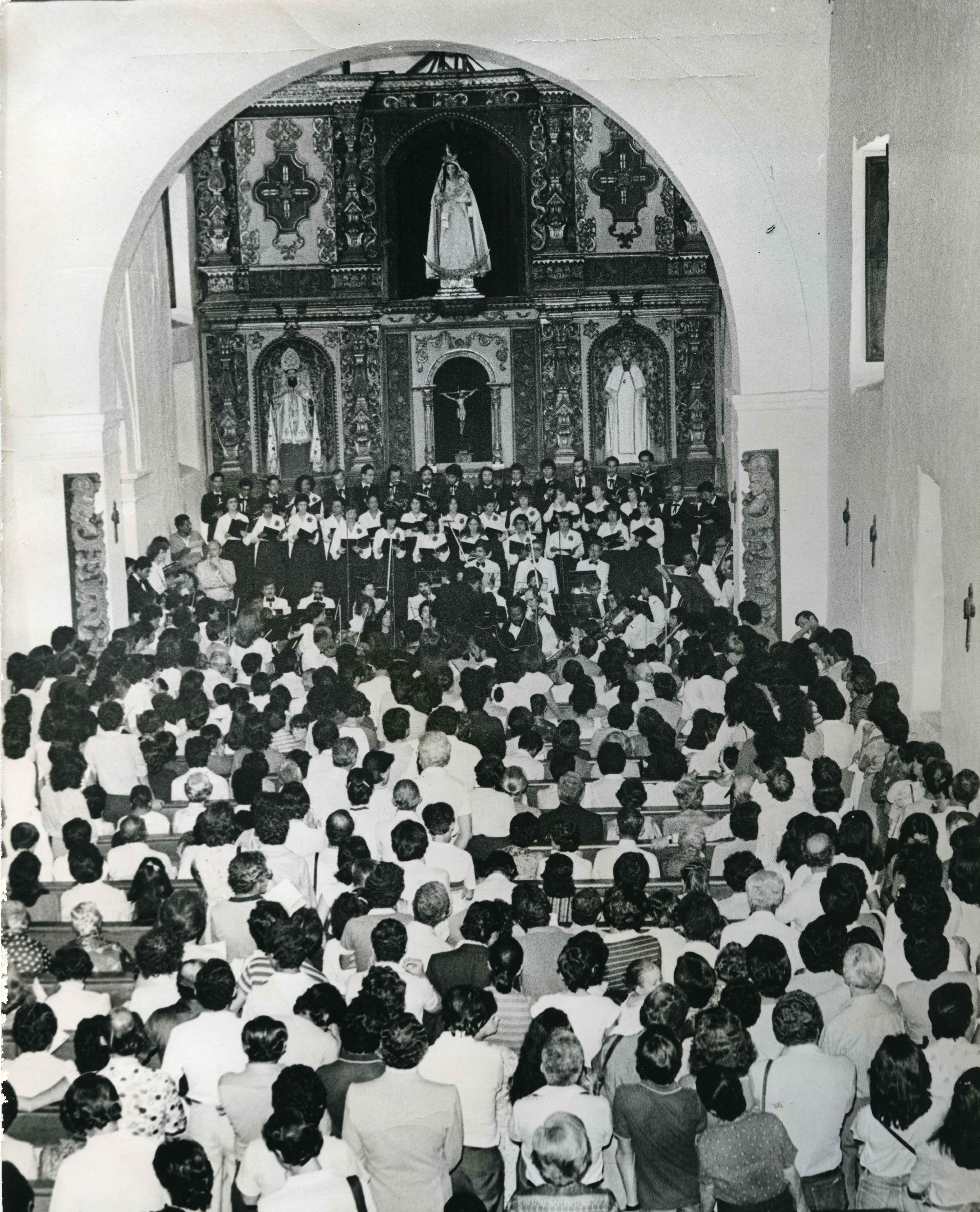 En la Iglesia de Nuestra Señora de la Merced, Occidente presento un extraordinario concierto de Paz, con la actuación especial de la Orquesta sinfónica del Valle y el Coro polifónico de Cali. En la grafica, un aspecto general, del sagrado recinto que se colmo d caleños.El Archivo del Patrimonio Fotográfico y Fílmico del Valle del Cauca es responsabilidad de la Biblioteca Departamental del Valle Jorge Garcés Borrero, por convenio de cooperación suscrito con la Secretaria del Cultura Departamental, con el fin de aunar esfuerzos para su conservación, preservación y divulgación del Archivo entre la comunidad Vallecaucana, especialmente entre los estudiantes e investigadores que visitan la Biblioteca, propiciando el su uso y consulta permanente. La universidad Icesi es un colaborador en el proceso de difusión, facilitando la tecnología que permite la consulta de las imágenes.
