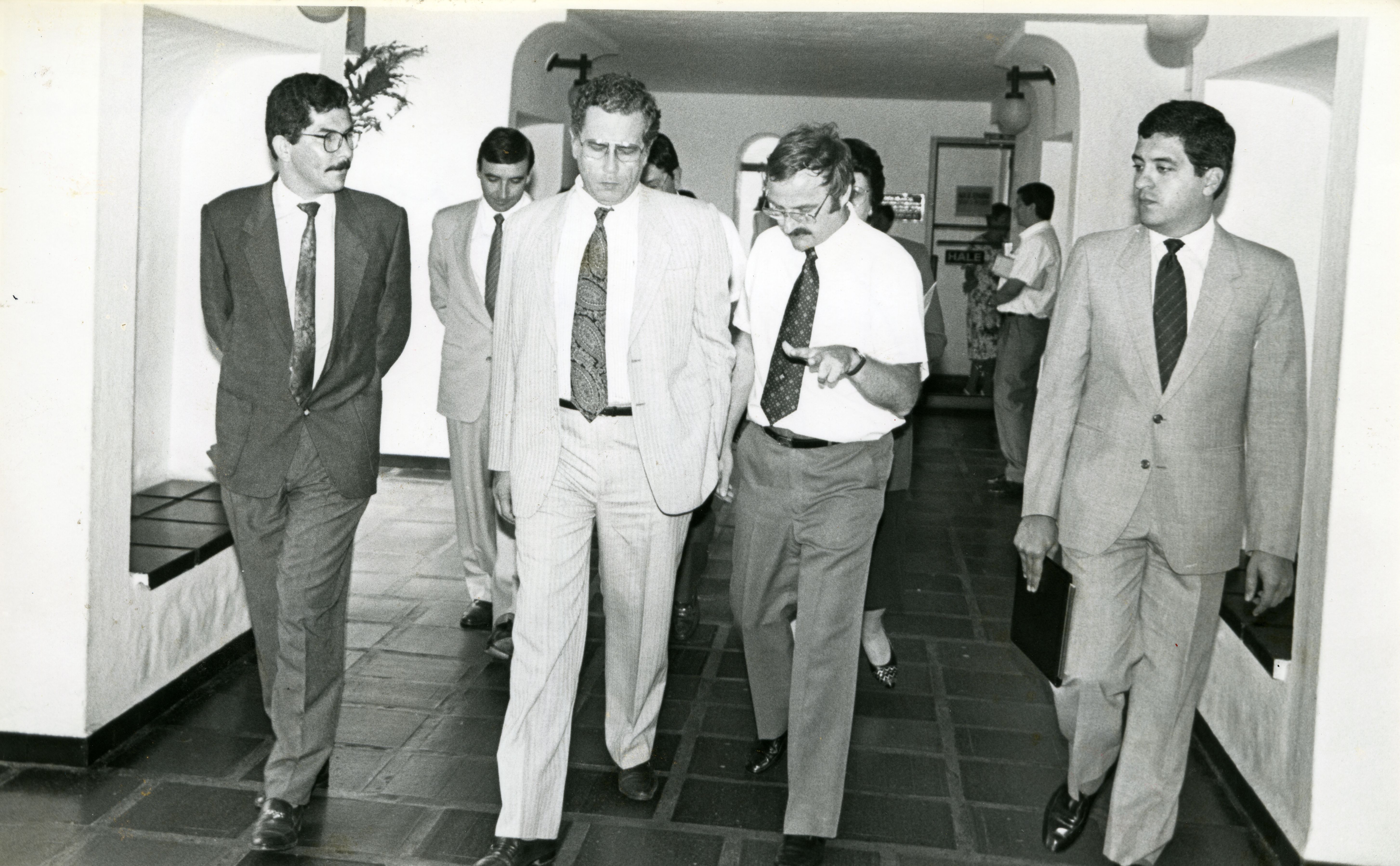 Se aprecia al gobernador de visita. Carlos Olguín Sardi. Nació en Cali en 1940. Abogado de la Universidad Javeriana. Cargos de elección popular: Representante a la Cámara, 1966 – 1970, Concejal de Cali, 1976 – 1978 - Gobernador del Valle, 1992 – 1995, Senador de la Republica, 1982 - 1986, 1990 - 1998, 2002 – 2006. Cargos de libre nombramiento y remoción: Gobernador del Valle, 1976 – 1978, Ministro de Comunicaciones, 1973 – 1976. Alcalde de Cali, 1970 – 1973. Presidente del Congreso de la República. Principales cargos desempeñados en el sector privado: Director Ejecutivo Conferencia Nacional de Gobernadores 1995-1998