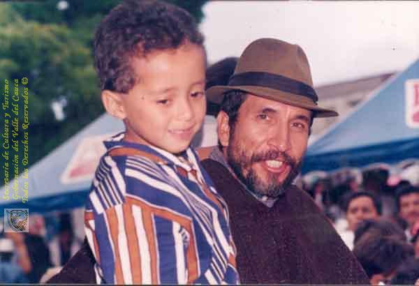 Jorge Velosa y niño por identificar, durante un evento cultural en Sevilla. 1996.