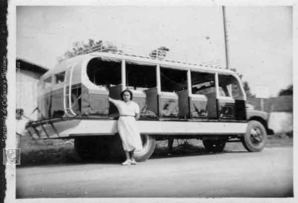la línea, transporte público, que llevaba a los corregimiento y pueblos vecinos. Bugalagrande, fecha aproximada, 1950.