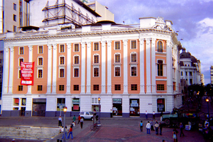 | dc.description | Plano medio. Teatro Jorge Isaac, Resalta un pendón rojo y algunos avisos en sus ventanillas. | spa |