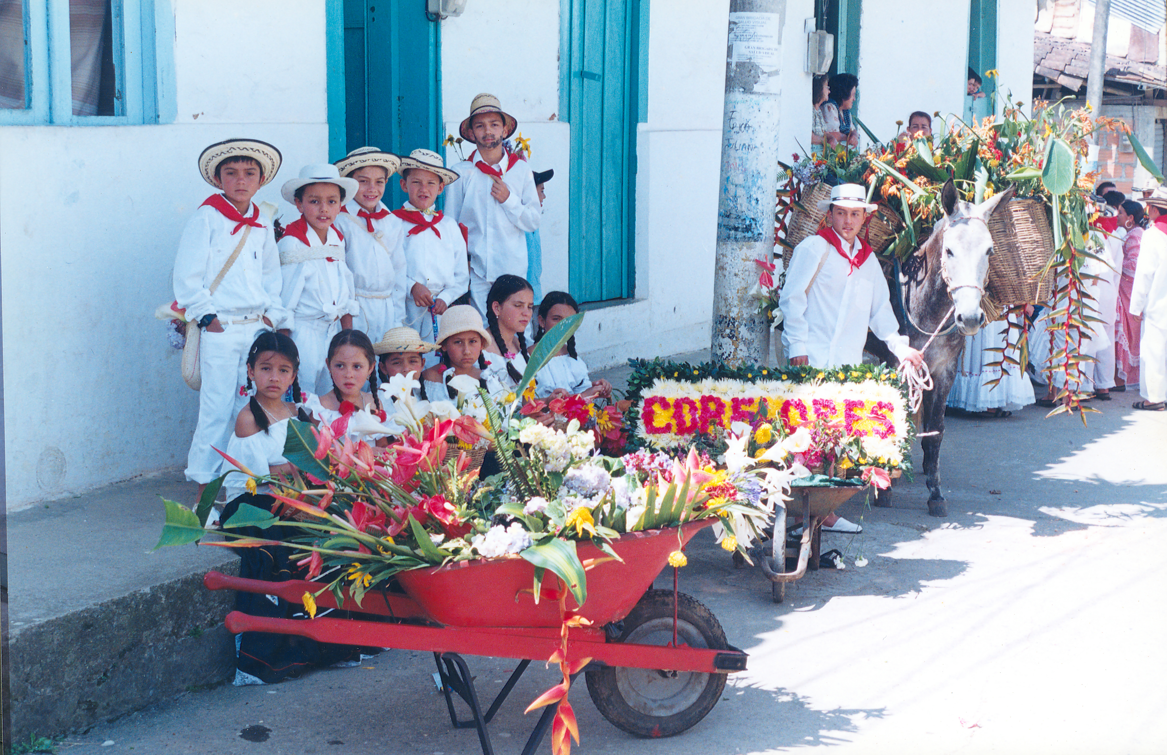 El Cairo, Valle del Cauca. Fundado en 1920, por Pedro Arango y otros. Nombres: Las Vueltas, Haceldama. Municipio desde 1947. Economía importante en agricultura, caficultura, entre otros. Atractivo turístico es su Bosque Natural de Las Amarillas en la Serranía del paraguas. Observamos en la imagen, Grupo Infantil Corflores. Sitio El Crucero