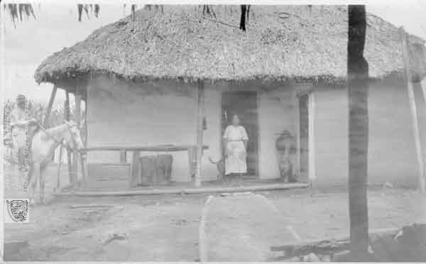 | dc.description | Casa típica campesina construída con bahereque y techo de paja. También observamos la pareja campesina, ella con su faldón largo, él llegando en su caballo al cual amarrá en la baranda de la chambrana. Candelaria. C. 1940. | spa |