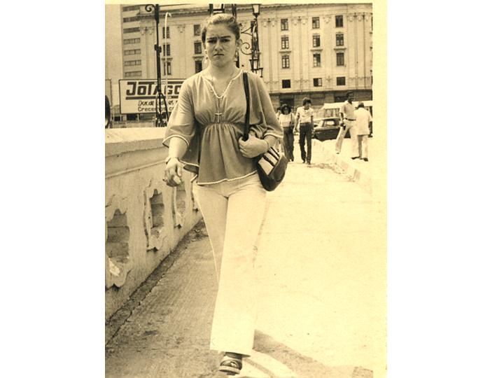 Casilda Fabiola Martínez Ortiz paseando por el Puente Ortiz. Santiago de Cali, 1976
