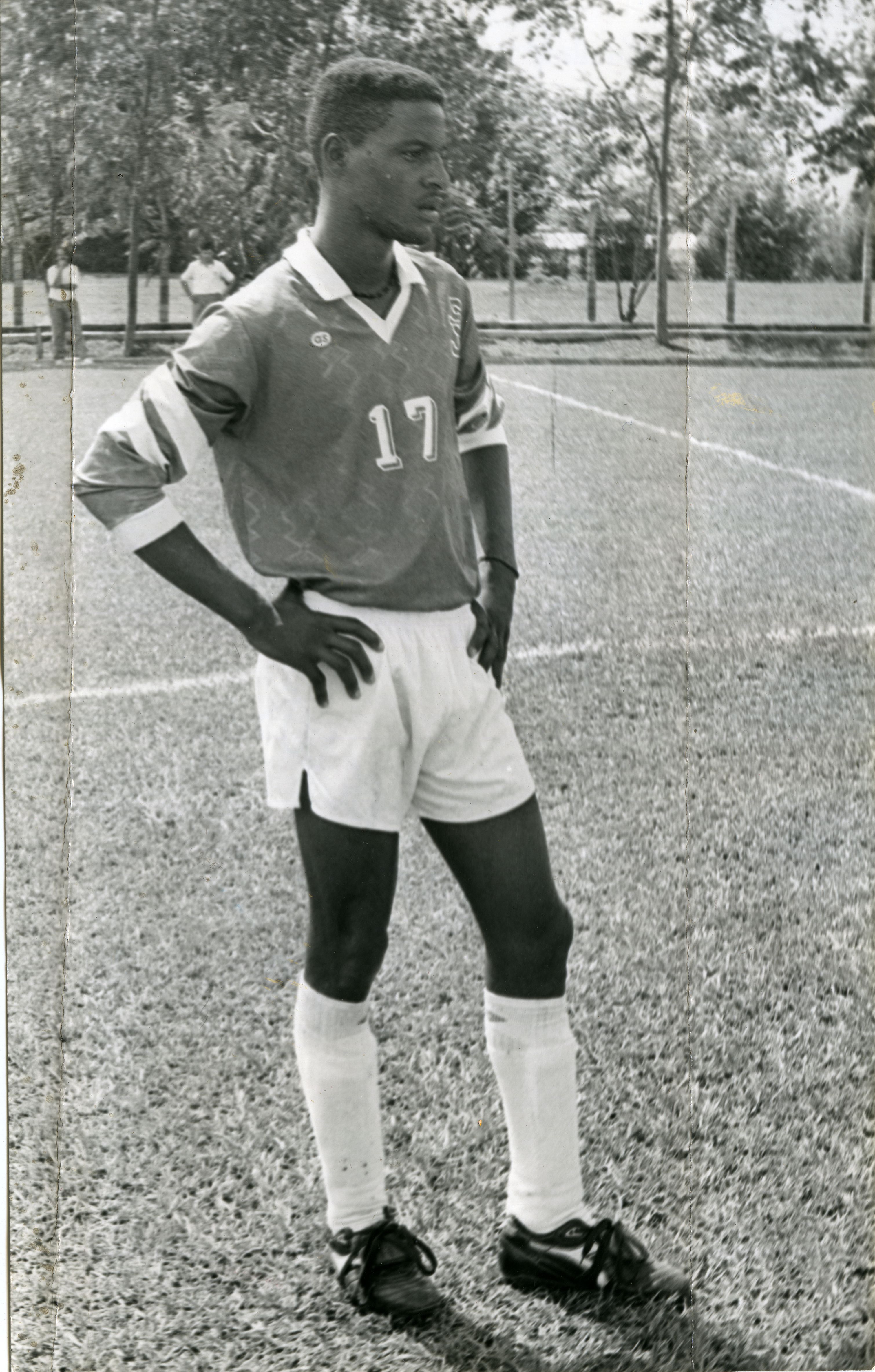 Fotografía de cuerpo completo de dos porteros de la Selección Colombiana de futbol, entre ellos se encuentra Cristian Villegas.