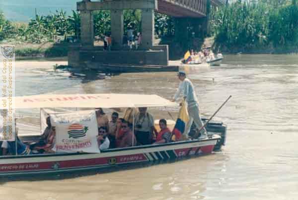 Lanchas en el río Cauca, muy usadas para movilizar mercados, mercancías y también como recreación familiar