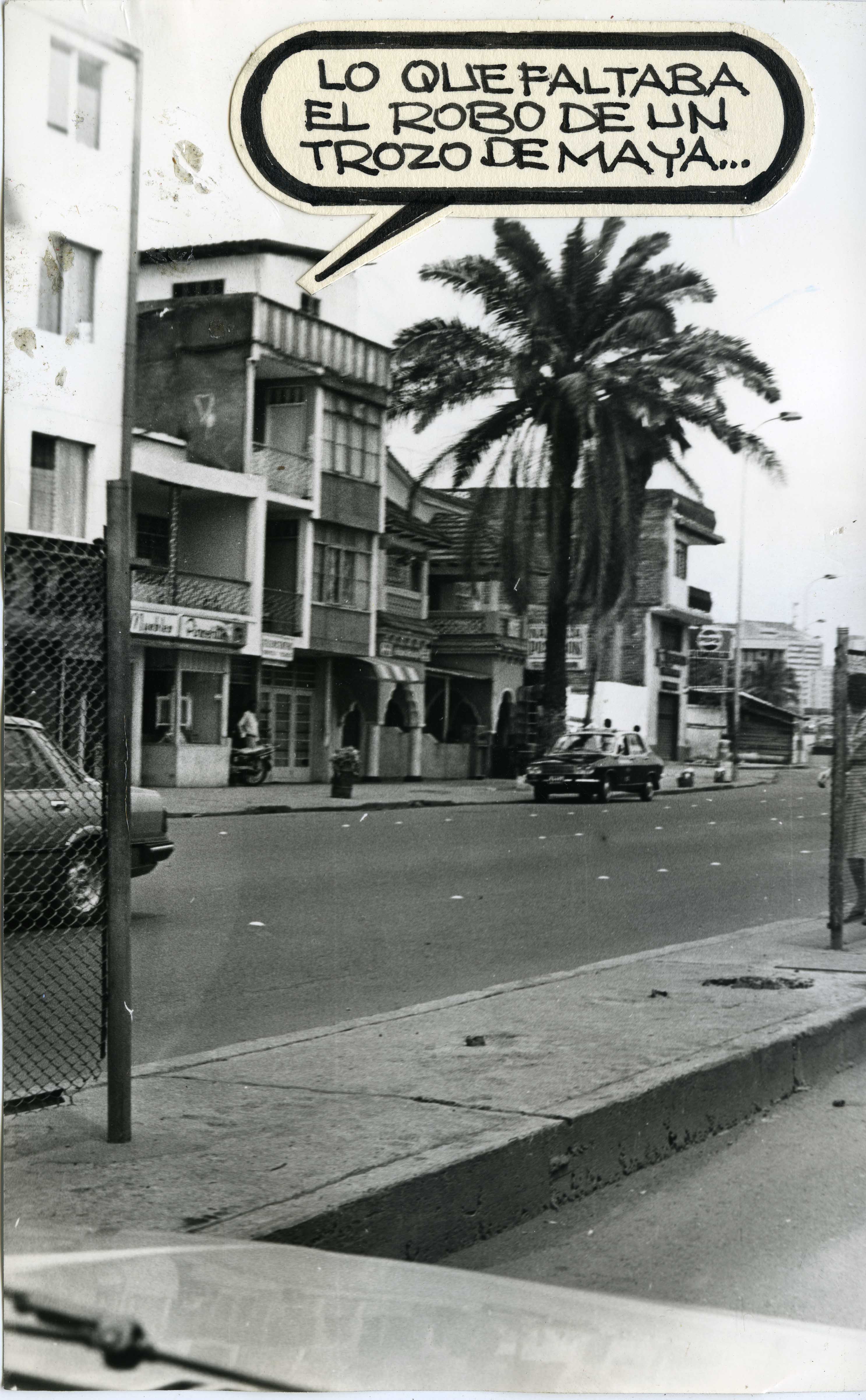 Robo de maya separadora en la Avenida Quinta de Santiago de Cali >El Archivo del Patrimonio Fotográfico y Fílmico del Valle del Cauca es responsabilidad de la Biblioteca Departamental del Valle Jorge Garcés Borrero, por convenio de cooperación suscrito con la Secretaria del Cultura Departamental, con el fin de aunar esfuerzos para su conservación, preservación y divulgación del Archivo entre la comunidad Vallecaucana, especialmente entre los estudiantes e investigadores que visitan la Biblioteca, propiciando el su uso y consulta permanente. La universidad Icesi es un colaborador en el proceso de difusión, facilitando la tecnología que permite la consulta de las imágenes.