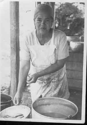 Waldina Osorio en su toldo de venta de Comidas en la estación del ferrocarril de La Cumbre. 1968.