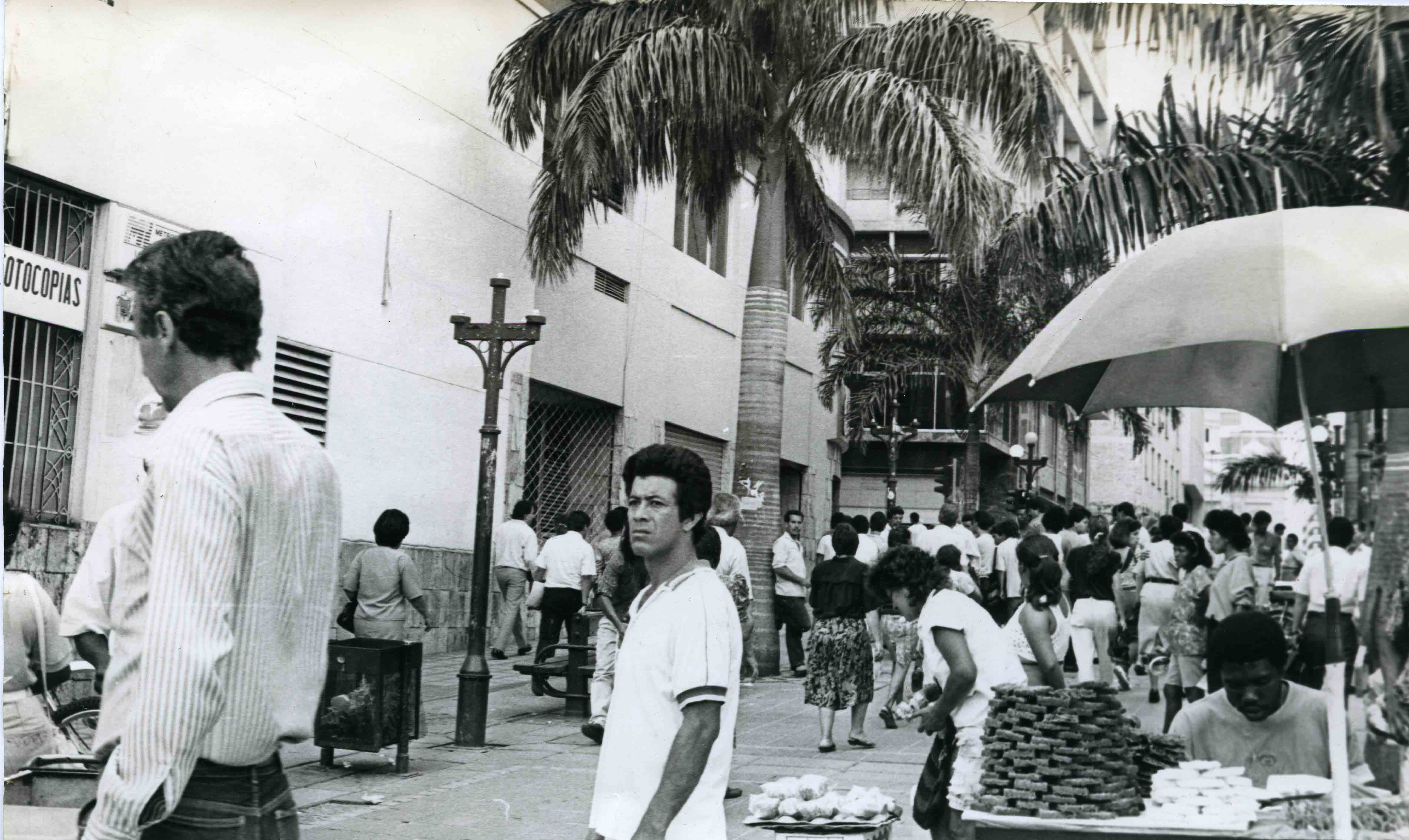 Peatones y ventas informales en las calles de la ciudad de Cali.- El Archivo del Patrimonio Fotográfico y Fílmico del Valle del Cauca es responsabilidad de la Biblioteca Departamental del Valle Jorge Garcés Borrero, por convenio de cooperación suscrito con la Secretaria del Cultura Departamental, con el fin de aunar esfuerzos para su conservación, preservación y divulgación del Archivo entre la comunidad Vallecaucana, especialmente entre los estudiantes e investigadores que visitan la Biblioteca, propiciando el su uso y consulta permanente. La universidad Icesi es un colaborador en el proceso de difusión, facilitando la tecnología que permite la consulta de las imágenes.