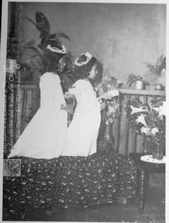 Amparo Yepes Arrubla y Mercedes Yepes, celebrando la Primera comunión