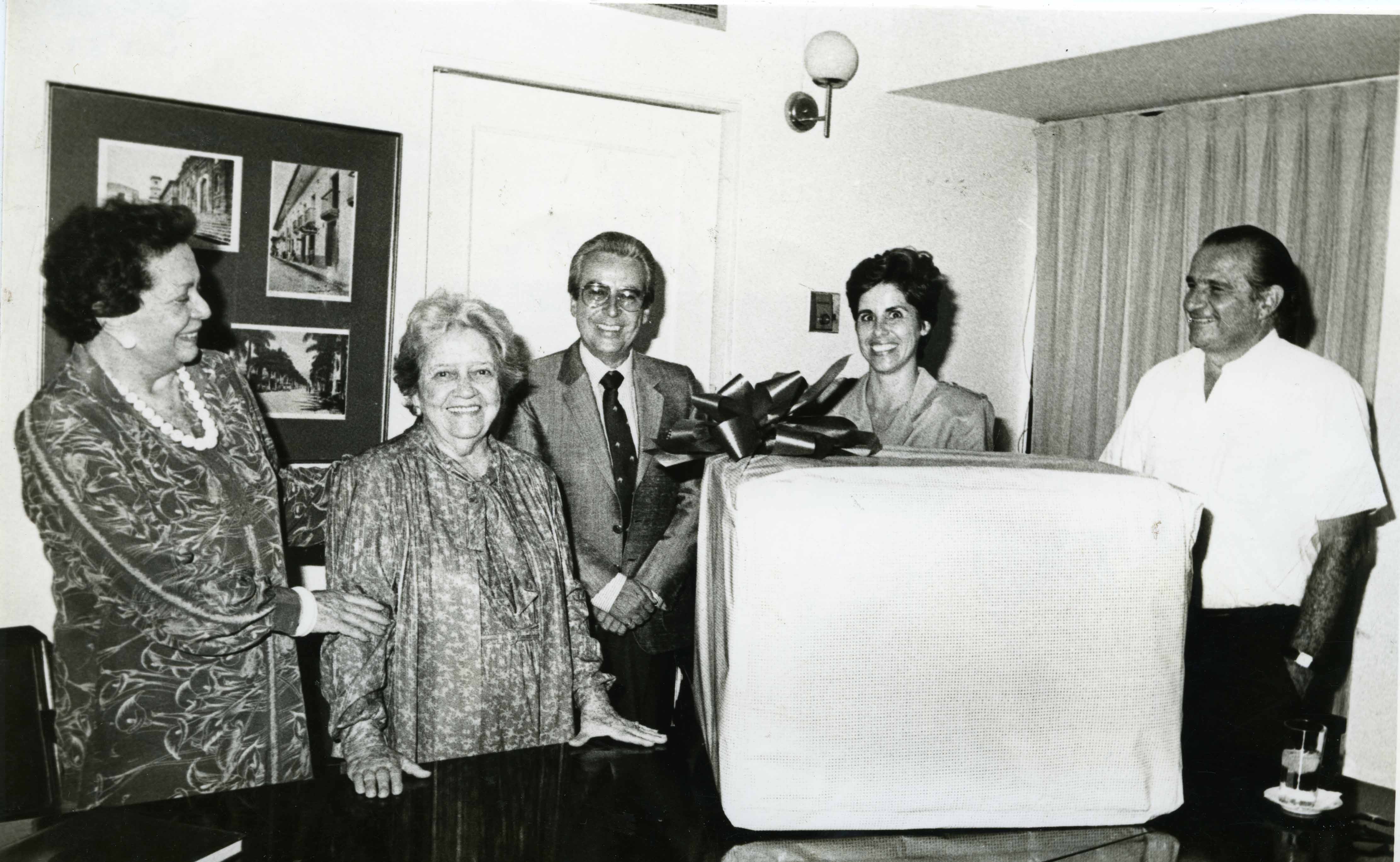 Al cumplir 90 años de vida Rosita Cadavid de Arboleda solicito a sus amigos y allegados que el mayor homenaje que podían hacerle era otorgar donaciones al "Cottolengo del Padre Ocampo". En razón de esta petición , a FES donde tre televisores a dicha institucion, para recreacion de los casi 600 ancianos que alli se atienden al momento de la entrega de izquierda a derecha se encuentran: Esmeralda Arboleda, Rosa Cadavid de Arboleda, Hugo Lora Camacho, Mariela Sardi de Caicedo y Harold Zangen Janek.El Archivo del Patrimonio Fotográfico y Fílmico del Valle del Cauca es responsabilidad de la Biblioteca Departamental del Valle Jorge Garcés Borrero, por convenio de cooperación suscrito con la Secretaria del Cultura Departamental, con el fin de aunar esfuerzos para su conservación, preservación y divulgación del Archivo entre la comunidad Vallecaucana, especialmente entre los estudiantes e investigadores que visitan la Biblioteca, propiciando el su uso y consulta permanente. La universidad Icesi es un colaborador en el proceso de difusión, facilitando la tecnología que permite la consulta de las imágenes.