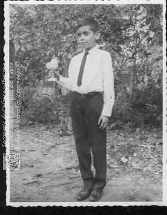 Victor Hugo Marmolejo, disfrutando de una deliciosa copa de helado en el solar de la casa. Bolívar, C.1965.