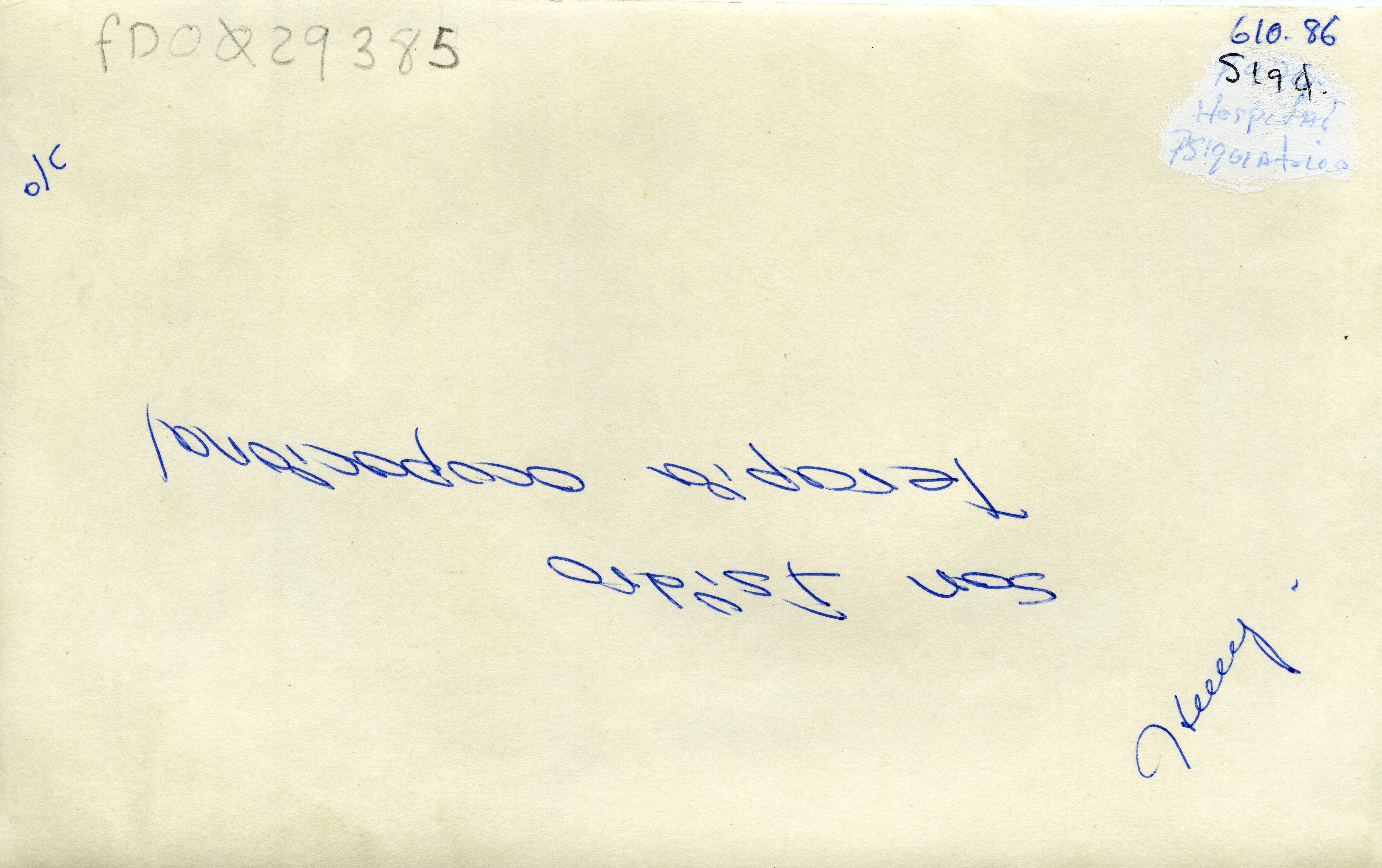 En 1956 se empieza la construccion de las instalaciones cuya primera etapa incluía un edificio con el área administrativa, área de consulta externa, área de laboratorio, rayos X y encelografía, área para una botica, área para las salas de cirugía, enfermería, hospitalización y consulta externa.