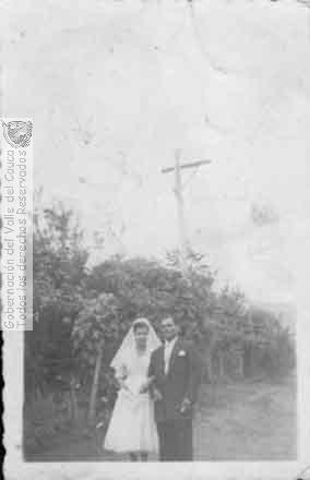 María fernanda granobles y Antonio Valderrama el día de su matrimonio celebrado en la capilla del Ingenio Pichichí. Gucarí. C. 1950.