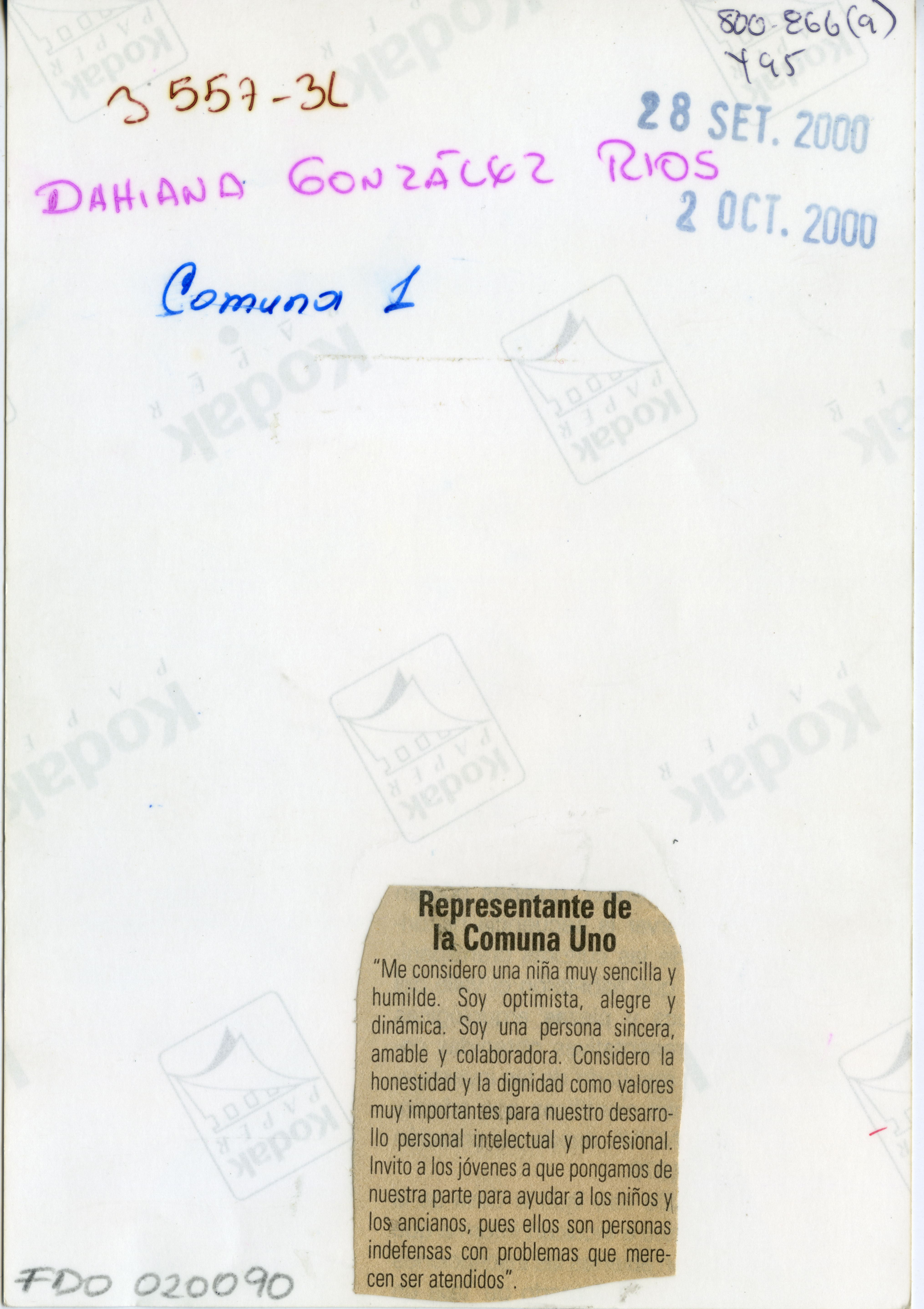 Primer plano de Dihiana Gonzáles Ríos, representante de la Comuna Uno.