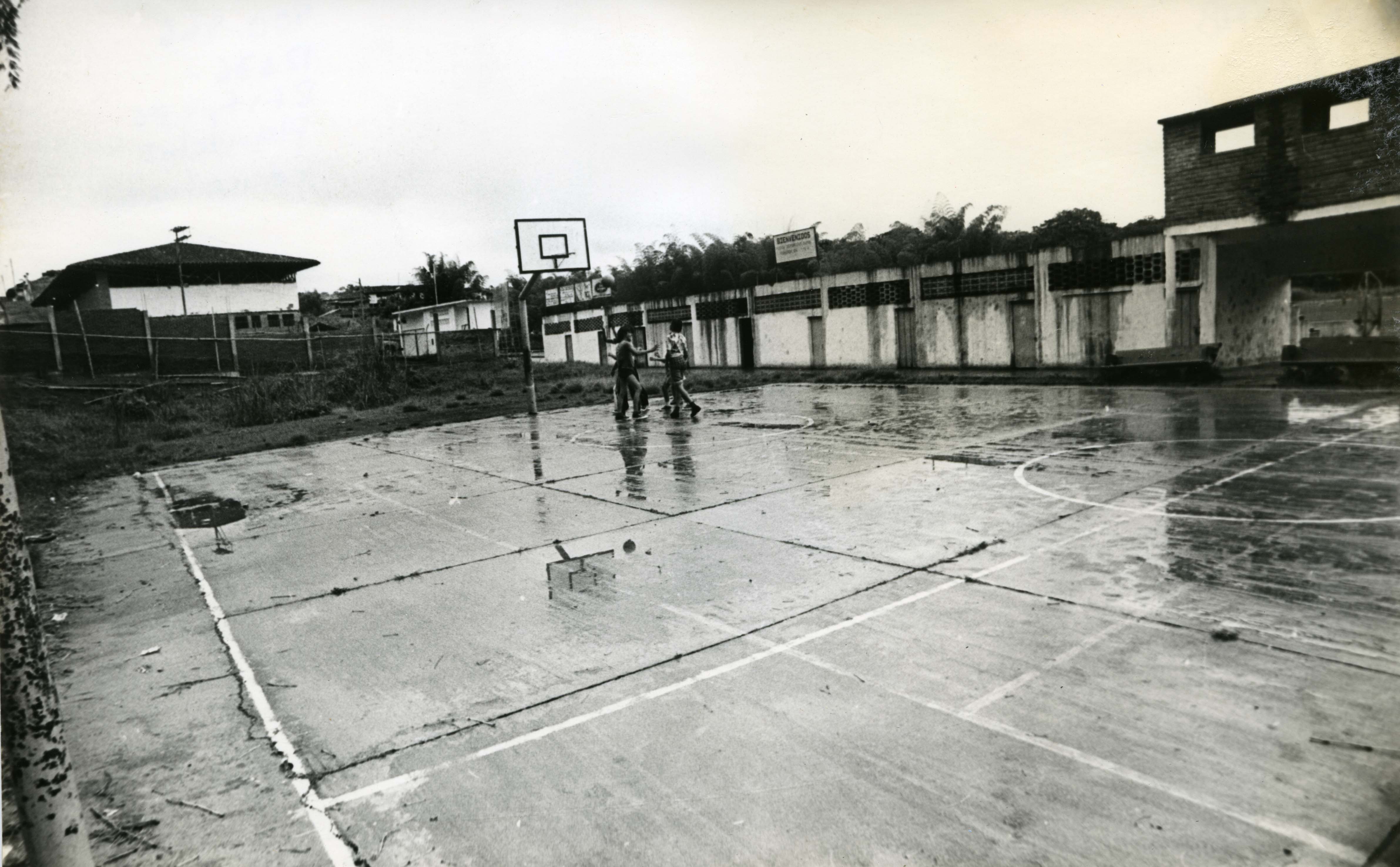 Plantel Educativo Público en Restrepo, Valle del Cauca, en la fotografía se distingue la cancha para deportes del complejo, con unos pocos niños practicando >El Archivo del Patrimonio Fotográfico y Fílmico del Valle del Cauca es responsabilidad de la Biblioteca Departamental del Valle Jorge Garcés Borrero, por convenio de cooperación suscrito con la Secretaria del Cultura Departamental, con el fin de aunar esfuerzos para su conservación, preservación y divulgación del Archivo entre la comunidad Vallecaucana, especialmente entre los estudiantes e investigadores que visitan la Biblioteca, propiciando el su uso y consulta permanente. La universidad Icesi es un colaborador en el proceso de difusión, facilitando la tecnología que permite la consulta de las imágenes.