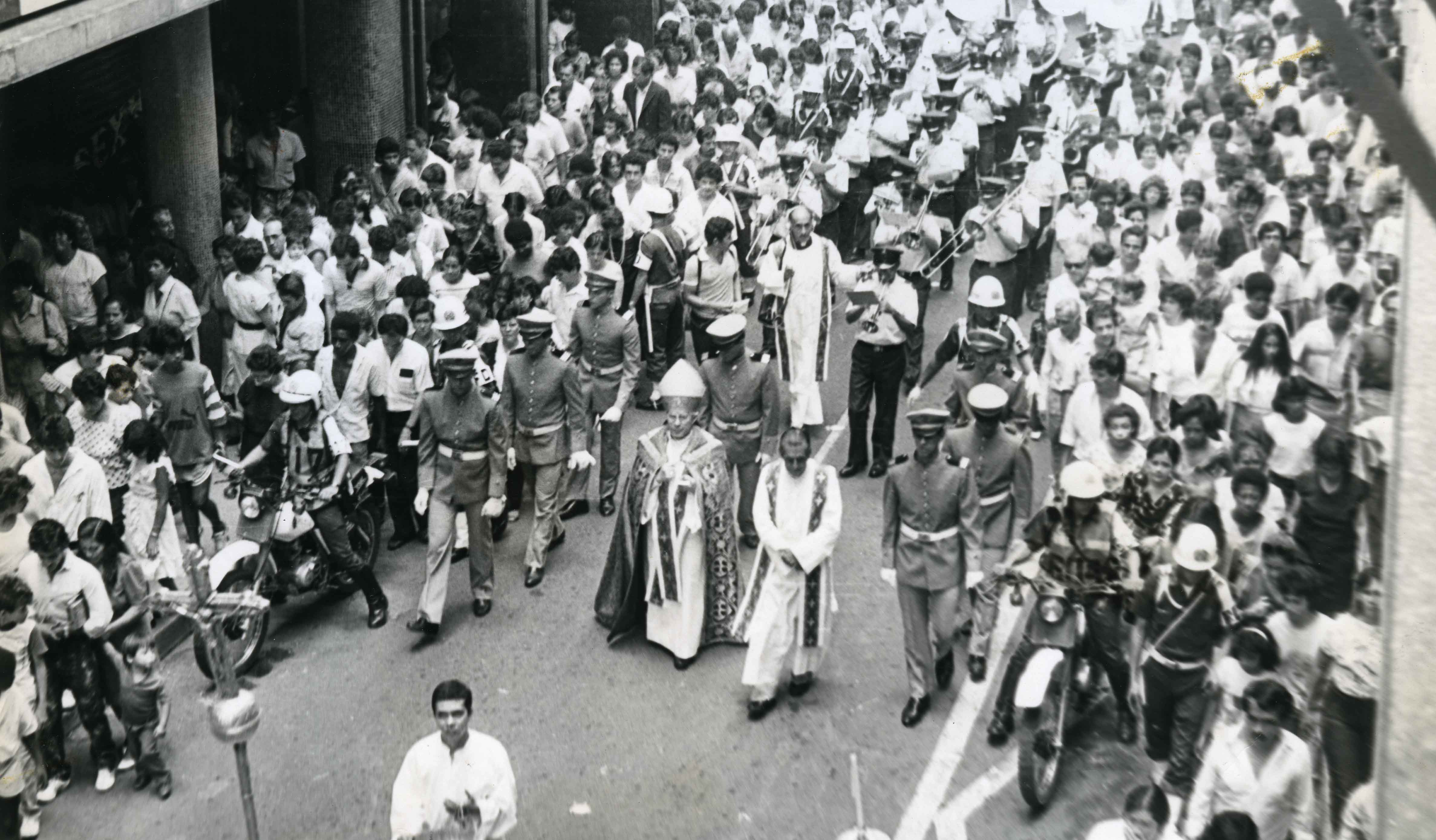 El Obispo Auxiliar de la Arquidiósesis de Cali, Monseñor Hector Gutierrez Pabón y el sacerdote Alfonso Hurtado Galvis, presidieron la celemonia del Viacrucis en las calles del centro de Cali >El Archivo del Patrimonio Fotográfico y Fílmico del Valle del Cauca es responsabilidad de la Biblioteca Departamental del Valle Jorge Garcés Borrero, por convenio de cooperación suscrito con la Secretaria del Cultura Departamental, con el fin de aunar esfuerzos para su conservación, preservación y divulgación del Archivo entre la comunidad Vallecaucana, especialmente entre los estudiantes e investigadores que visitan la Biblioteca, propiciando el su uso y consulta permanente. La universidad Icesi es un colaborador en el proceso de difusión, facilitando la tecnología que permite la consulta de las imágenes.