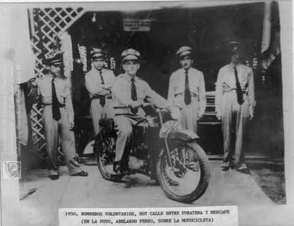 s. n. & s. n. (1950). Abelardo Ferro y otros miembros del cuerpo de Bomberos frente a Mercafé & 100568. ALCALA: Biblioteca Departamental Jorge Garces Borrero.