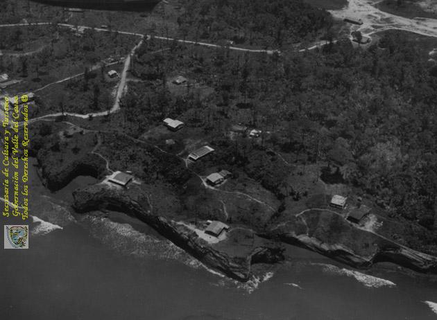 Vista aérea de los acantilados y playas de Juanchaco, en la costa pacífica. 1950.