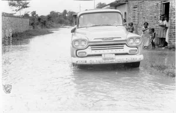 Calle diagonal al matadero inundada por la quebrada Párraga. Candelaria, 1962.