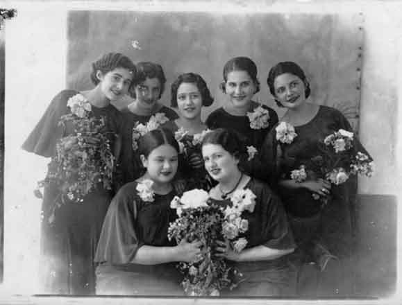 Blanca Lozano Cruz, Marina Lozano Cruz, Berta Lozano Cruz y Nina Martínez Cruz. Damas de la sociedad tulueña. C.1930