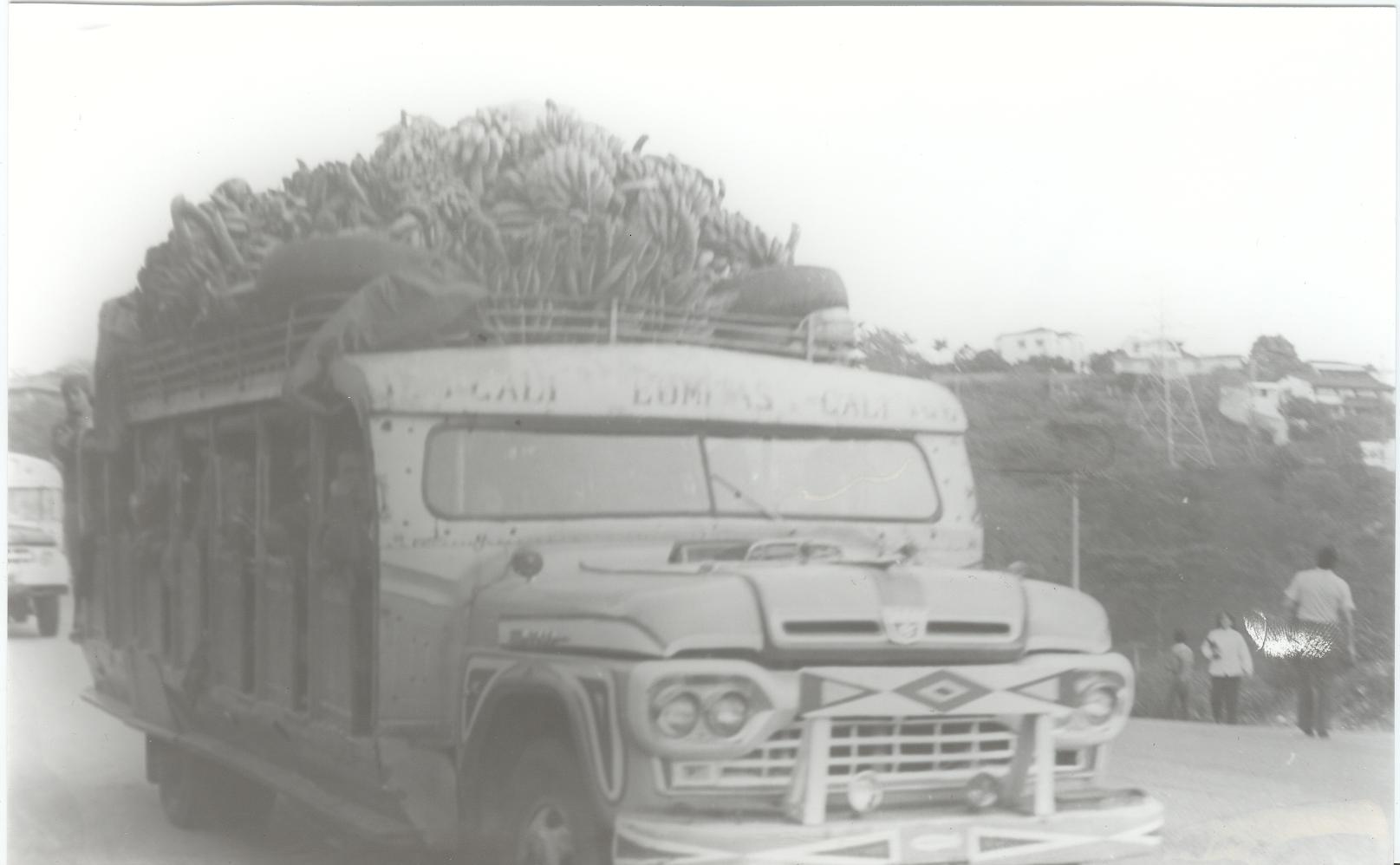 Martha Ines Ramos (1979). La "Chiva", transporte utilizado por los habitantes de las veredas y zonas rurales, para transportar víveres y sacar sus productos a los mercados locales & B150. OTRO: Biblioteca Departamental Jorge Garces Borrero.