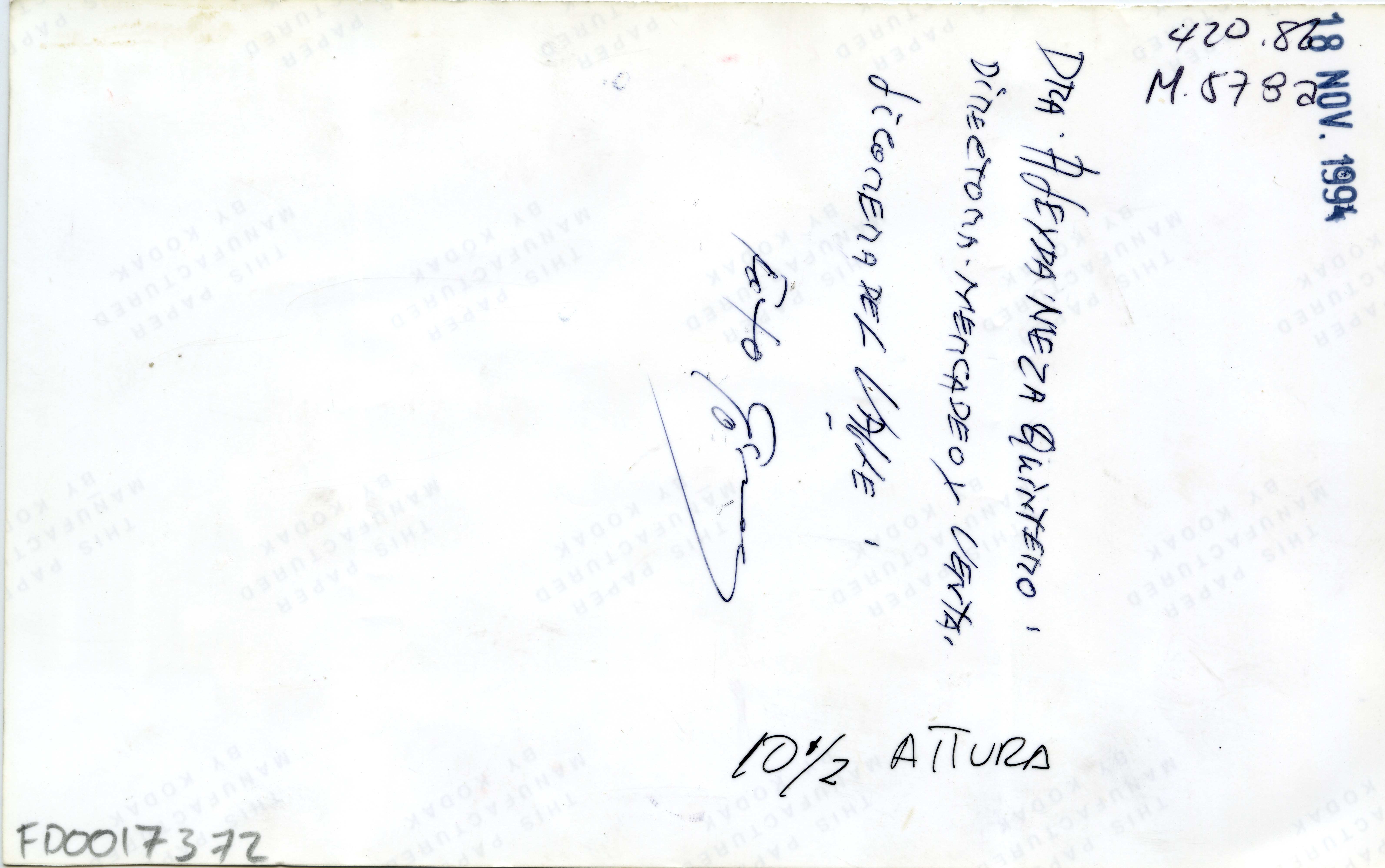 Doctora Aleyda Meza Quintero, directora Mercadeo y Venta, Licorera del Valle. Al reverso de la fotografía se anexa recorte: Doctora Aleyda Meza Quintero, directora Mercadeo y Venta, Licorera del Valle