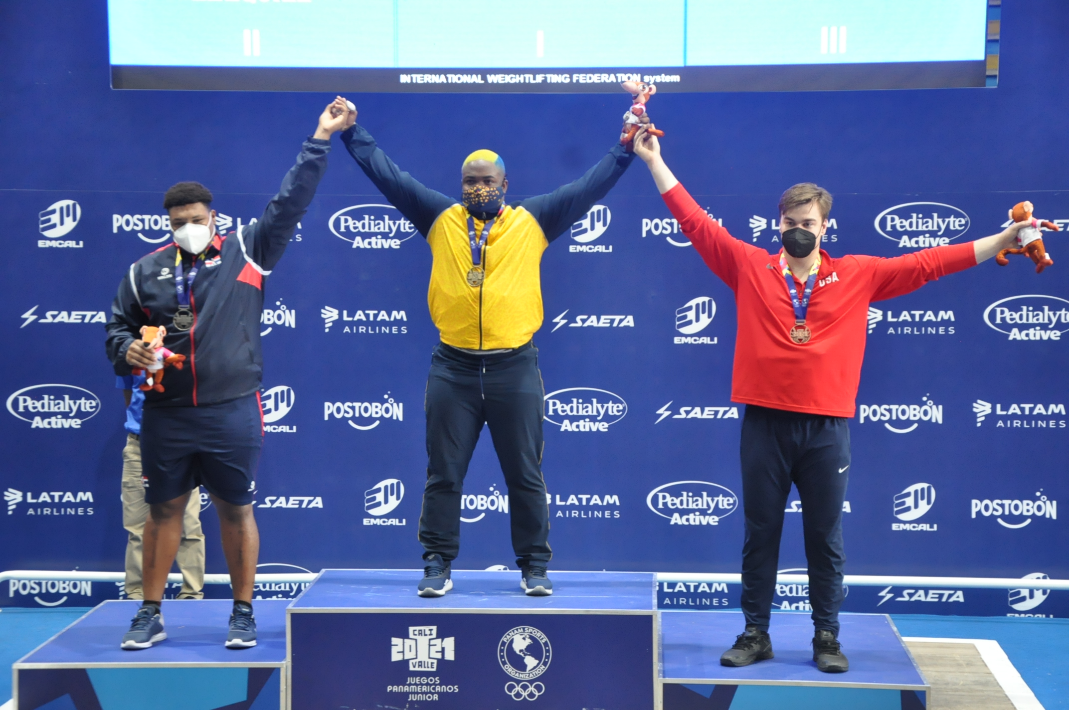 En la fotografía podemos observar a los tres ganadores en la modalidad "Levantamiento de pesas 109 kg" en los "I Juegos Panamericanos Junior", llevados a cabo en la ciudad de Cali. El oro se lo llevó el colombiano Arley Fernando Bonilla, la medalla de plata se la llevó el dominicano Ezequiel German Nieves y la medalla de bronce fue para el estadounidense Ryan Shriver.