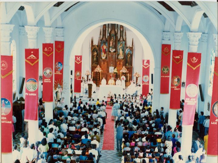 Interior de la Iglesia de San José, durante la Adoración del Santísimo en la Semana Santa. La Unión, 1989.