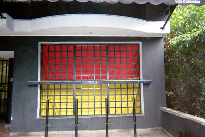 Toma frontal. Retícula con bicromatismo de fondo como punto distintivo de escena. Vegetación en lateral derecho. Convergencia lineal.