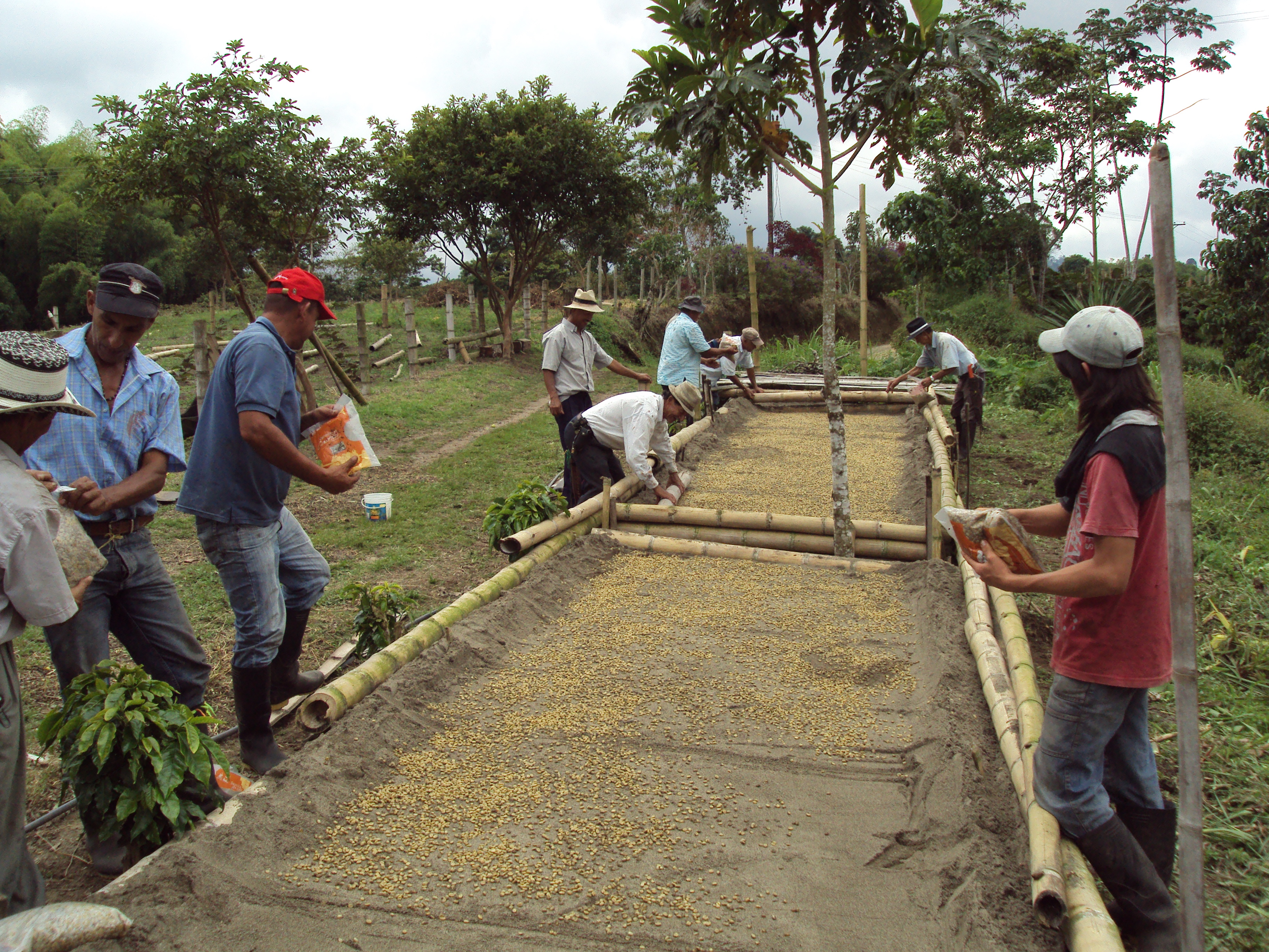 Observamos en la imagen, caficultores trabajando en la vereda El Congal. Se aprecia las semillas de café
