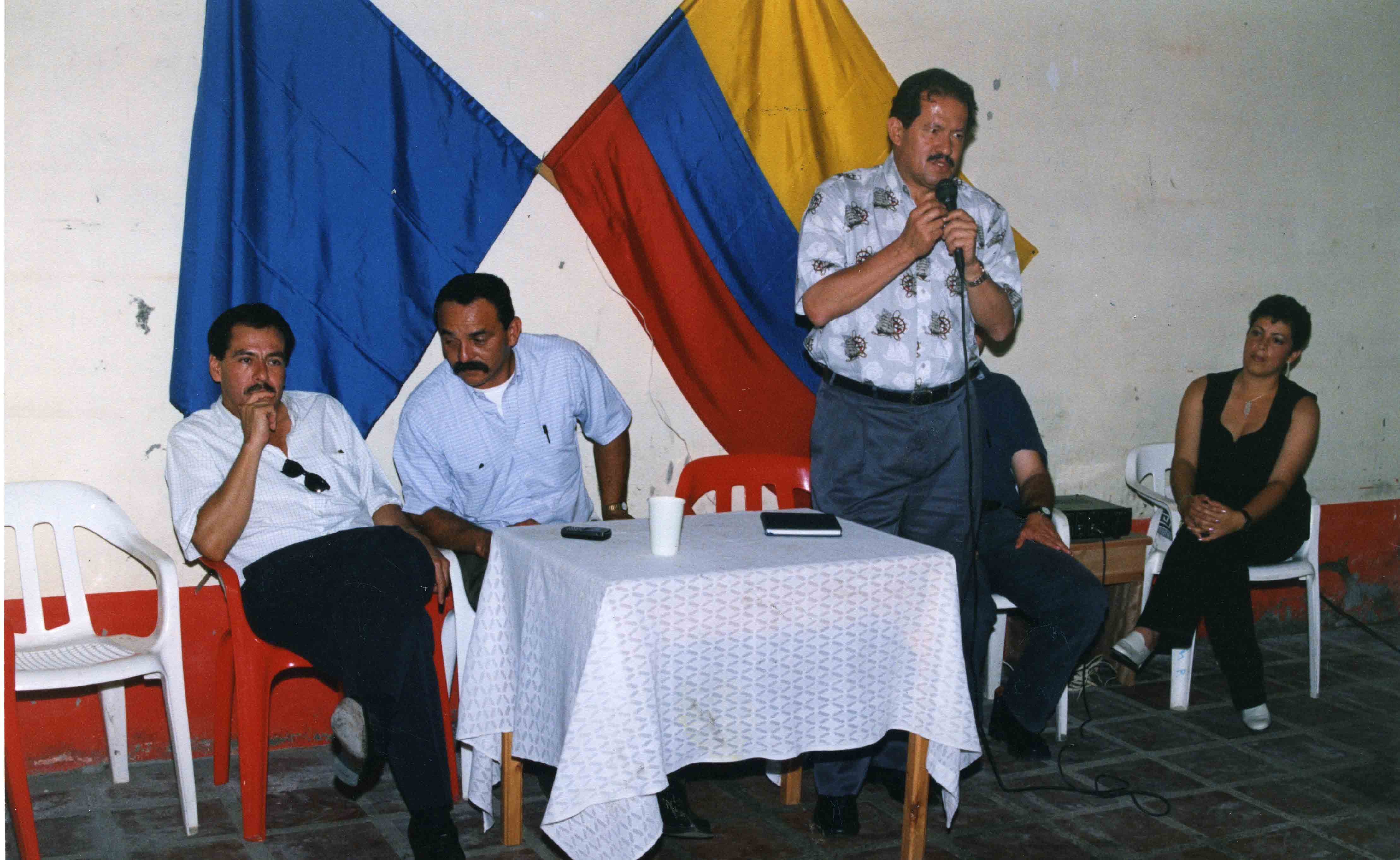 En el pie de foto dice lo siguiente: Ya tengo una decisión política. El ex ministro de Trabajo, Angelino Garzón, aseguró que ya tomó una decisión política. "Si soy candidato a algo, lo seré por la Gobernación del Valle". En la gráfica, cuando presídia una reunión en el municipio de Calima-Darién, donde contó con la compañía del diputado Rubén Darío Agudelo Puerta y el Concejal Raúl Becerra.- El Archivo del Patrimonio Fotográfico y Fílmico del Valle del Cauca es responsabilidad de la Biblioteca Departamental del Valle Jorge Garcés Borrero, por convenio de cooperación suscrito con la Secretaria del Cultura Departamental, con el fin de aunar esfuerzos para su conservación, preservación y divulgación del Archivo entre la comunidad Vallecaucana, especialmente entre los estudiantes e investigadores que visitan la Biblioteca, propiciando el su uso y consulta permanente. La universidad Icesi es un colaborador en el proceso de difusión, facilitando la tecnología que permite la consulta de las imágenes.