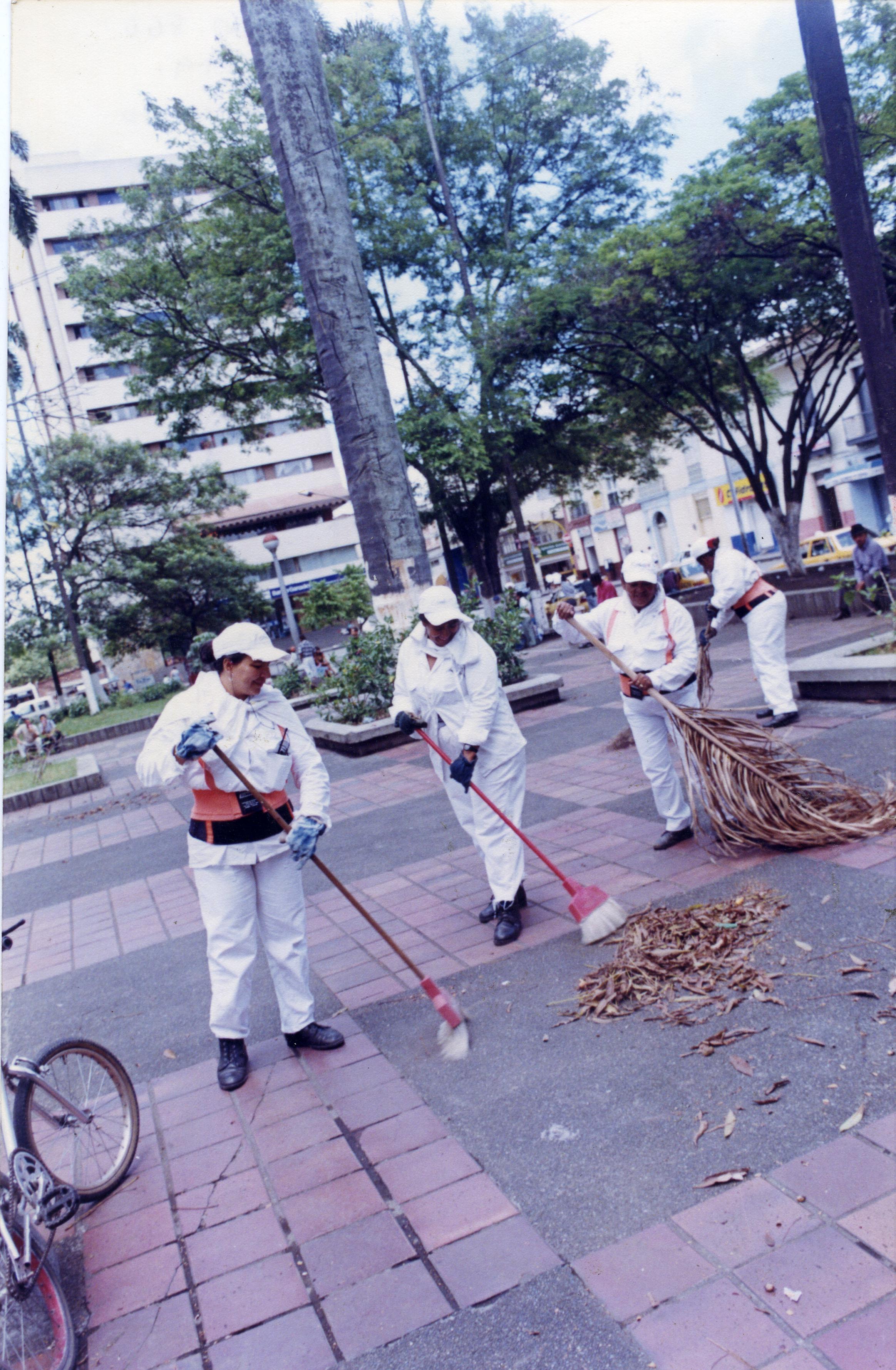 En la gráfica se aprecia personal de aseo de limpieza en el parque de Palmira